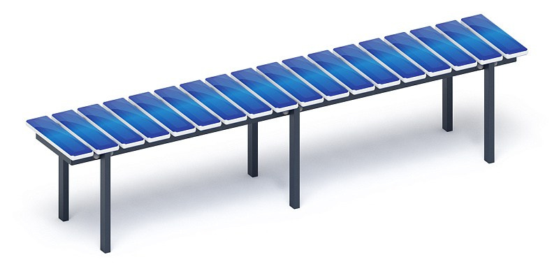 Скамья - МФ 42.01.15-01 (Джинс) Габариты (ШхДхВ): 380х1860х470 мм Зона безопасности, мм: 1380х2200 Возрастные ограничения от 3 лет