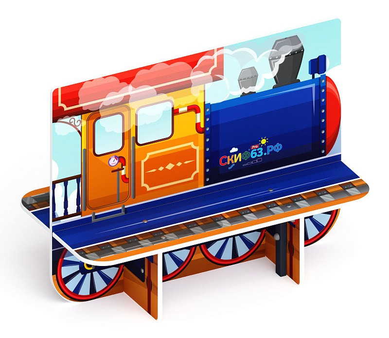 Паровозик - Скамейка детская - МФ 41.03.06 Габариты (ШхДхВ): 1180x620x900 мм Зона безопасности, мм: 2180х1620 Возрастные ограничения от 3 лет