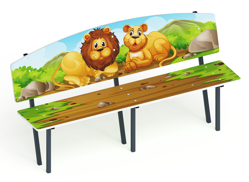 Скамейка детская Саванна - МФ 41.01.01-01.И1 Габариты (ШхДхВ): 1840x480x1000 мм Зона безопасности, мм: 2840х1480 Возрастные ограничения от 3 лет
