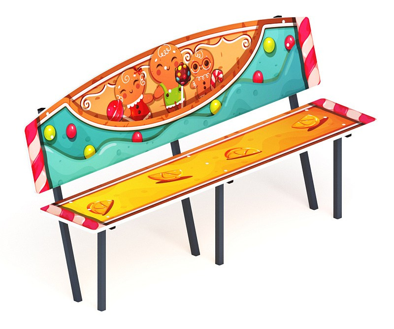 Скамейка детская Пряничный домик - МФ 41.01.01-04.И1 Габариты (ШхДхВ): 1840x480x1000 мм Зона безопасности, мм: 2840х1480 Возрастные ограничения от 3 лет