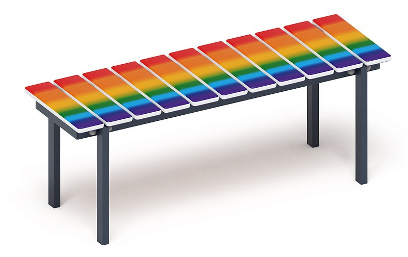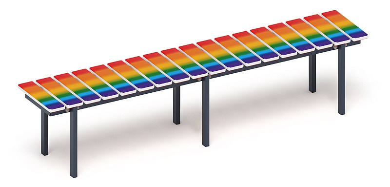Скамья - МФ 42.01.14 (Радуга) Габариты (ШхДхВ): 380х1200х470 мм Зона безопасности, мм: 1380х2200 Возрастные ограничения от 3 лет