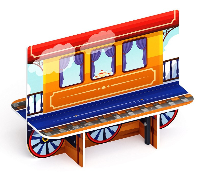Вагончик - Скамейка детская - МФ 41.03.07 Габариты (ШхДхВ): 1180x620x900 мм Зона безопасности, мм: 2180х1620 Возрастные ограничения от 3 лет