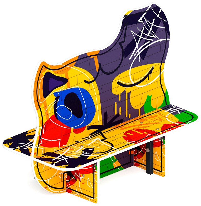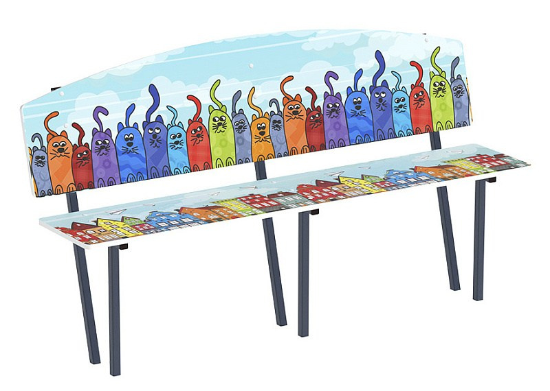 Скамейка детская Коты - МФ 41.01.01-02.И1 Габариты (ШхДхВ): 1840x480x1000 мм Зона безопасности, мм: 2840х1480 Возрастные ограничения от 3 лет