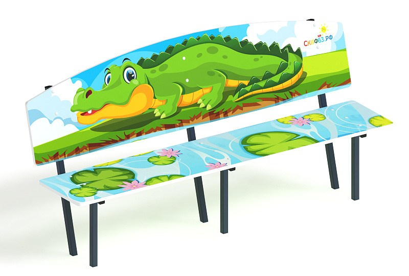 Скамейка детская Крокодил - МФ 41.01.01-И1 Габариты (ШхДхВ): 1840х480х1000 мм Зона безопасности, мм: 2840х1480 Возрастные ограничения от 3 лет