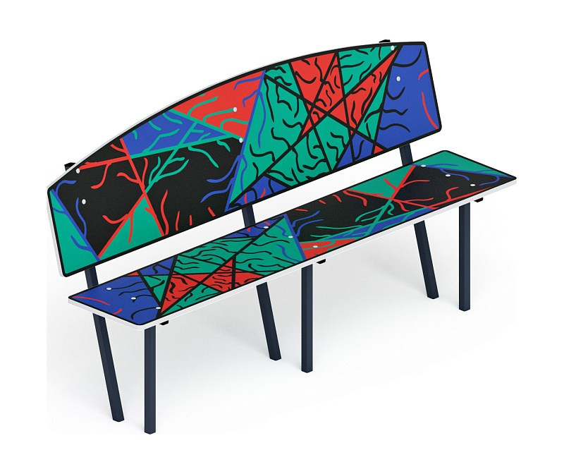Скамейка детская Абстракция - МФ 41.01.01-06.И1 Габариты (ШхДхВ): 1840x480x1000 мм Зона безопасности, мм: 2840х1480 Возрастные ограничения от 3 лет
