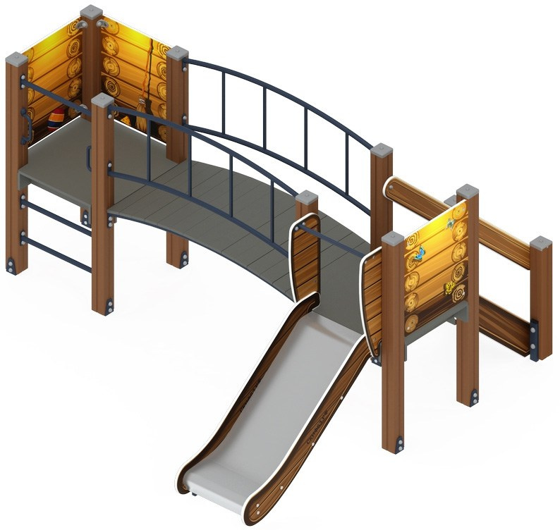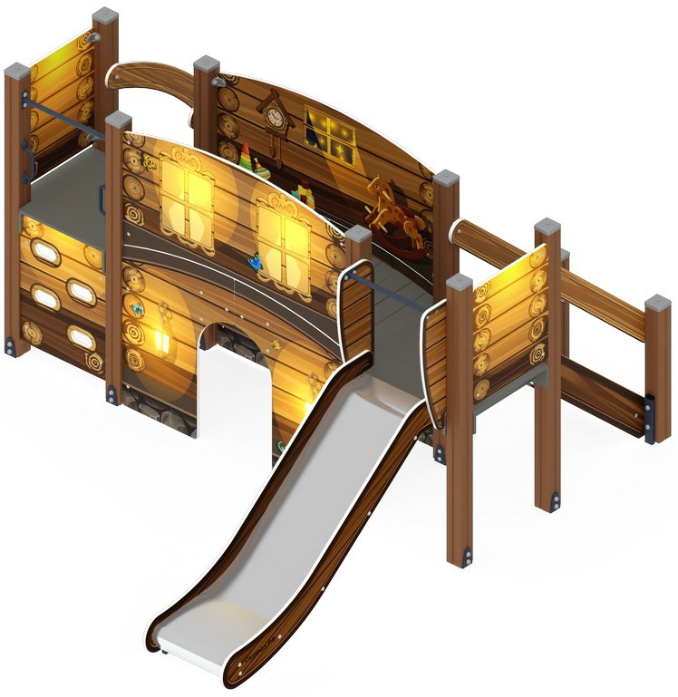 Карапуз (Эко) - ДИК 1.001.06-02 - Игровой комплекс Н=750 Габариты (ШхДхВ): 2670x3060x1600 Зона безопасности, мм: 6060х6170 Скат горки: H=750 (металлический скат)