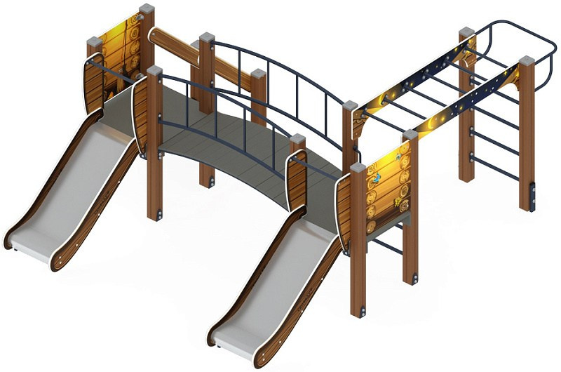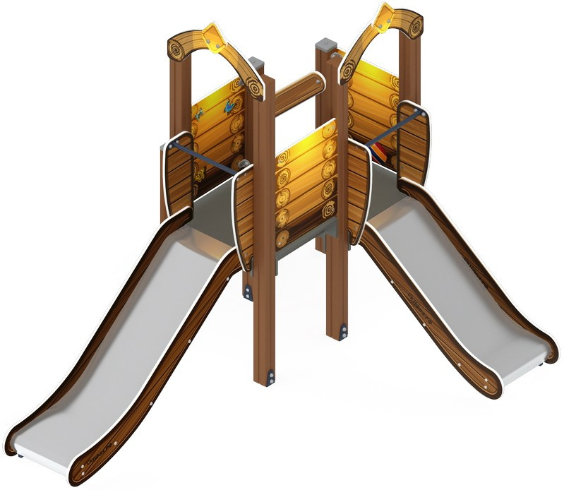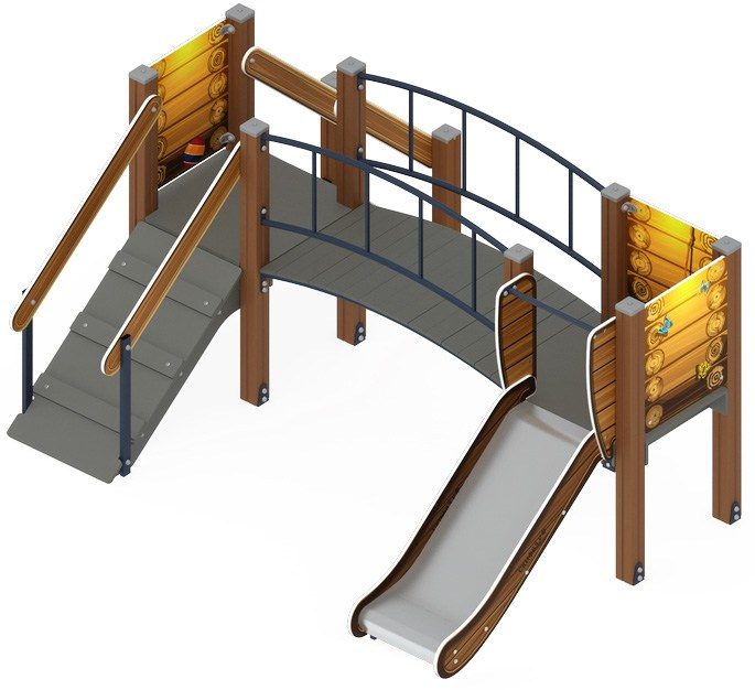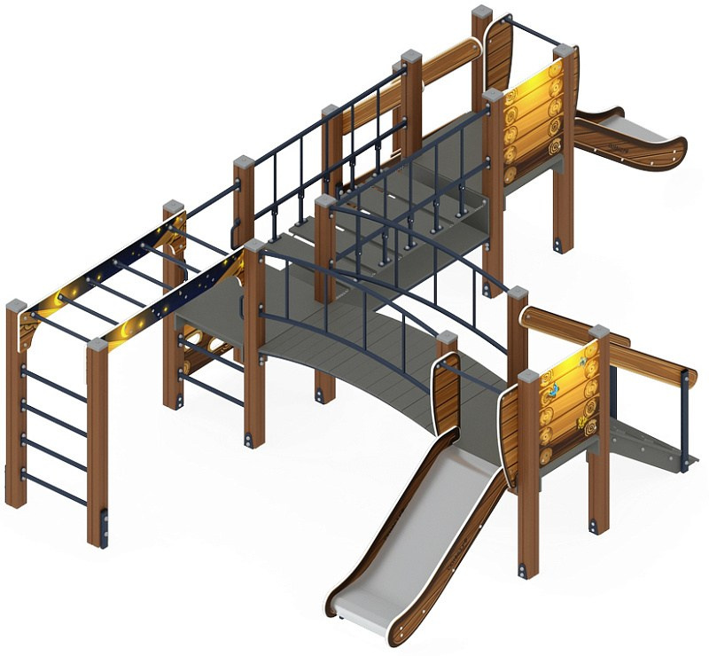 Карапуз (Эко) - ДИК 1.001.07-02 - Игровой комплекс Н=750 Н=900 Габариты (ШхДхВ): 2670x3140x2500 Зона безопасности, мм: 6640х6170 Скат горки: H=750 (металлический скат) / H=900 (металлический скат)