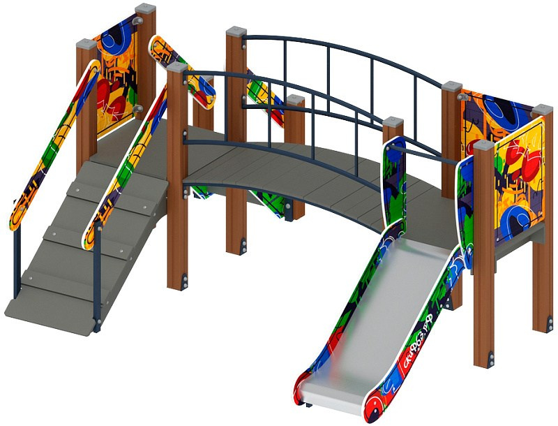 Карапуз (Граффити) - ДИК 1.001.06-03 - Игровой комплекс Н=750 Габариты (ШхДхВ): 2670x3060x1600 Зона безопасности, мм: 6060х6170 Скат горки: H=750 (металлический скат)