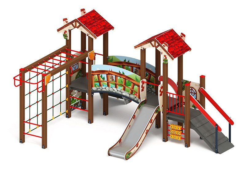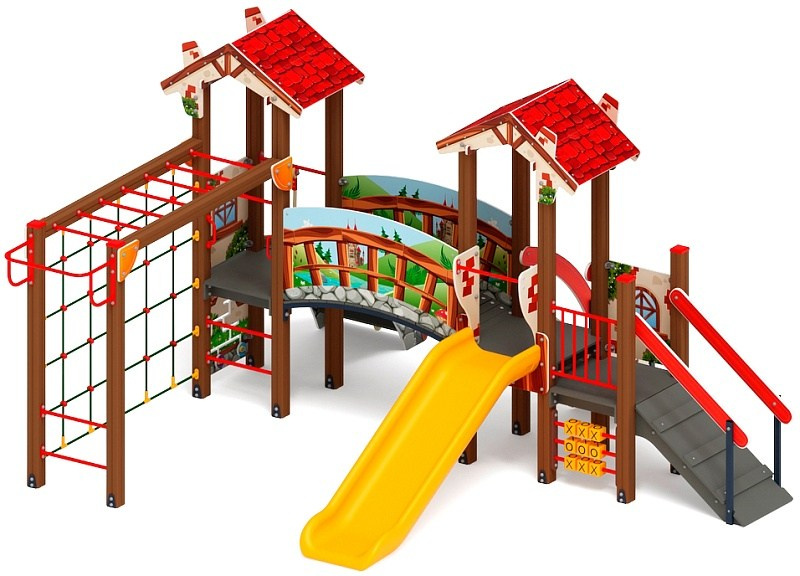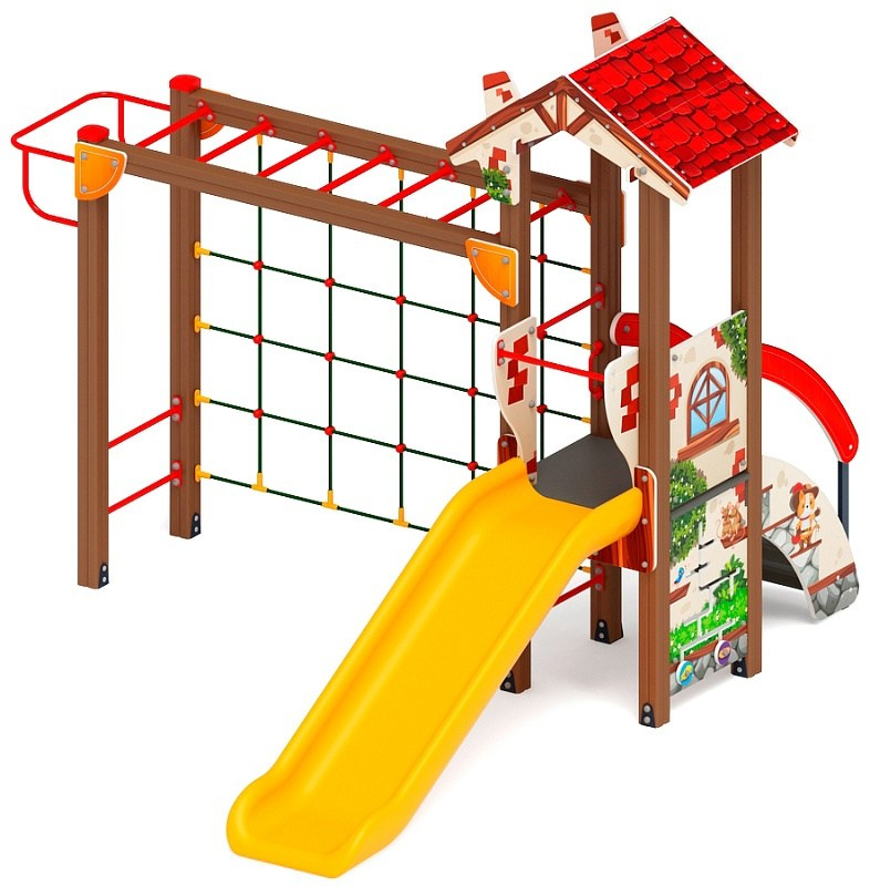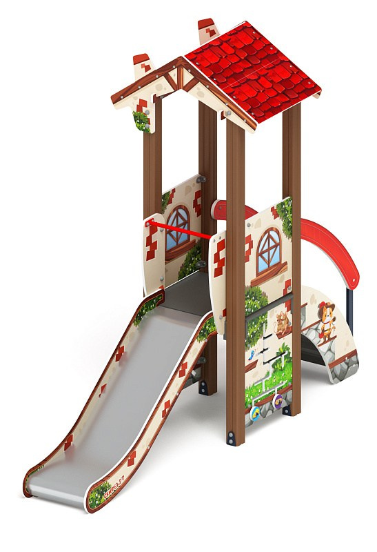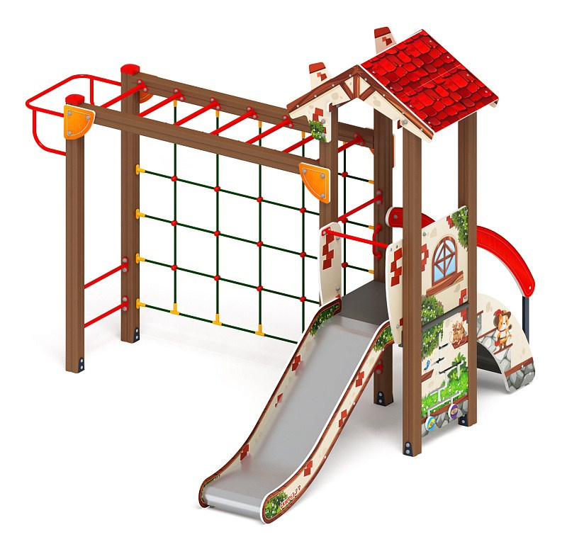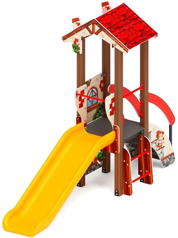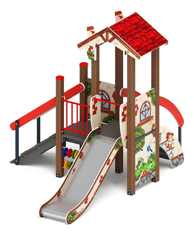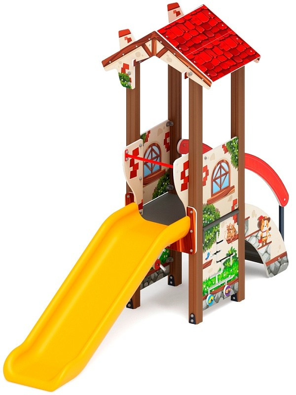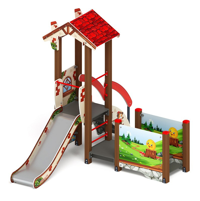 В гостях у сказки - ДИК 1.05.01-С - Игровой комплекс H=900 Габариты (ШхДхВ): 4940x3540x2790 Зона безопасности, мм: 7940х7040 Скат горки: H=900 (металлический скат)