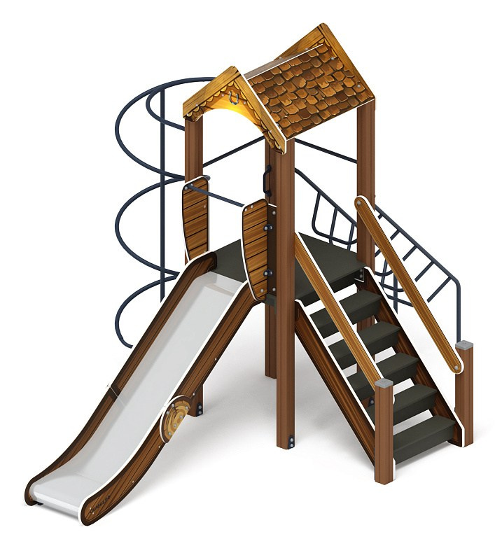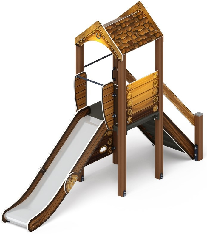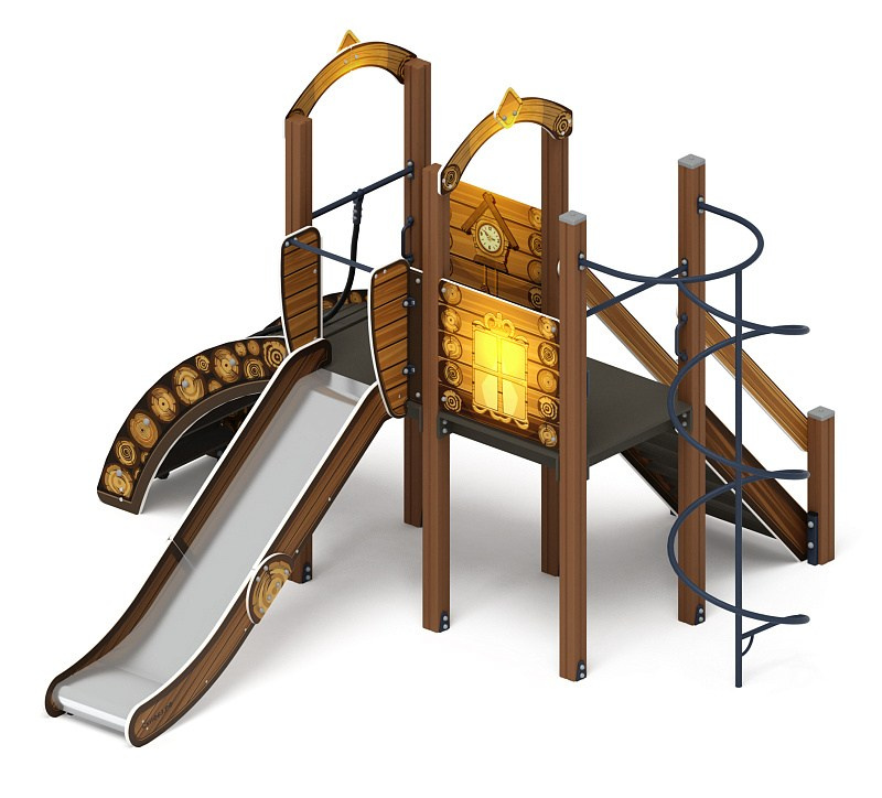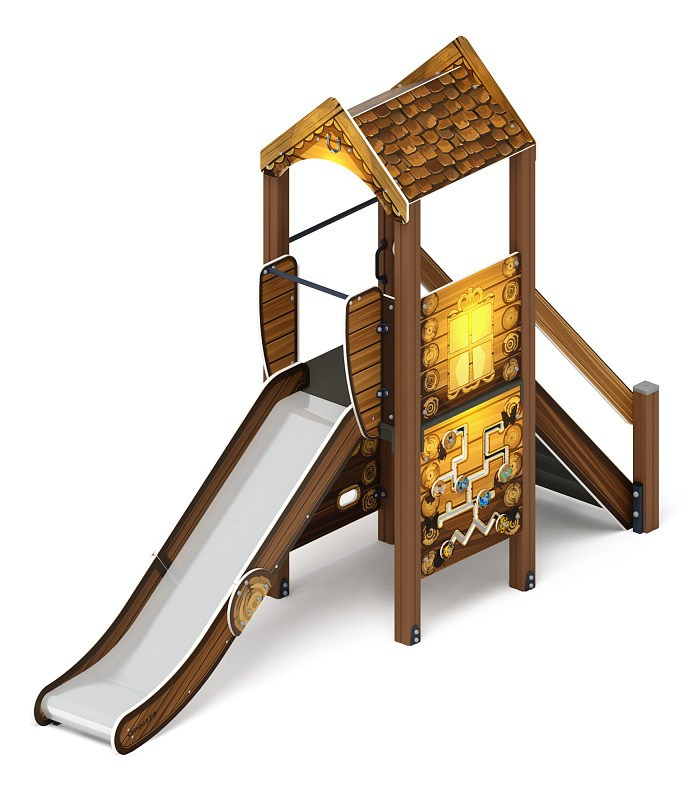 Играйте с нами (Тайга) - ДИК 2.01.1.02-03 - Игровой комплекс H=1200 Габариты (ШхДхВ): 4080x4210x2800 Зона безопасности, мм: 7580х7210 Скат горки: H=1200 (металлический скат) Возрастные ограничения от 5 до 12 лет