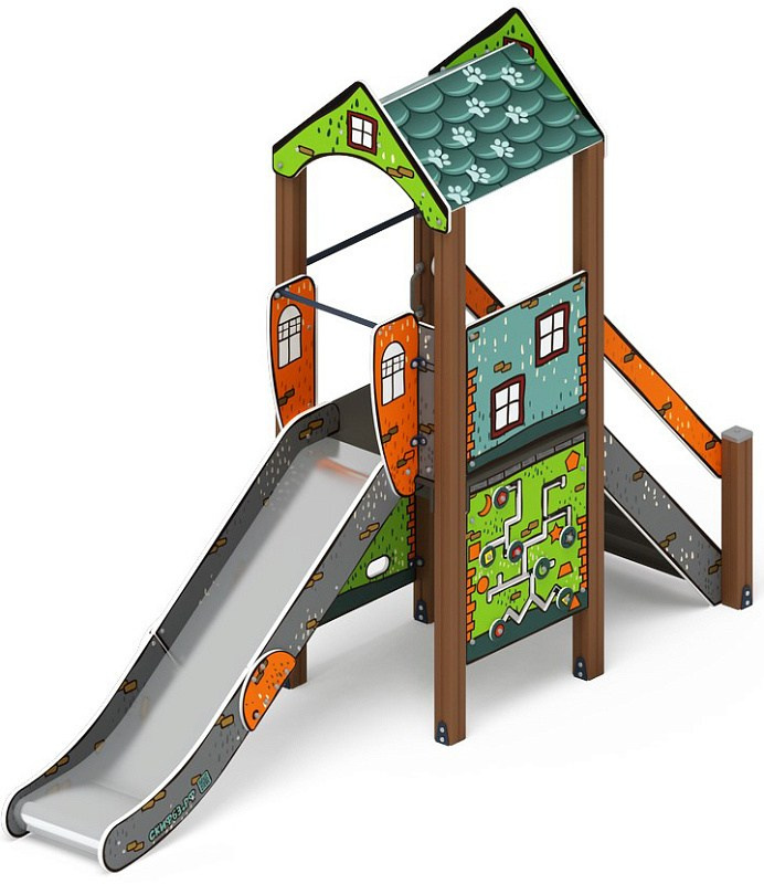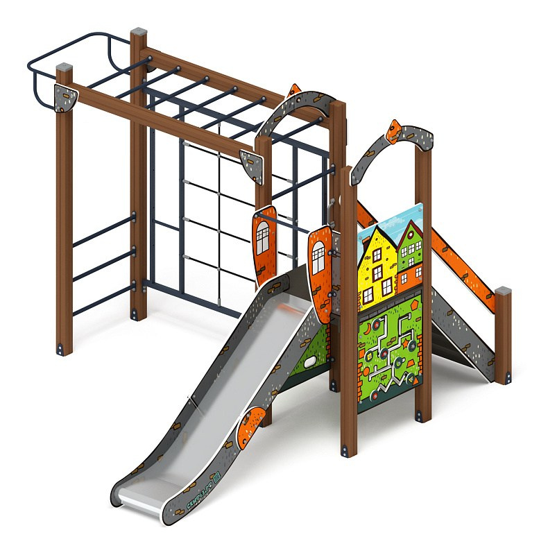 Играйте с нами (Город) - ДИК 2.01.1.01-11 - Игровой комплекс H=1200 Габариты (ШхДхВ): 4080x1000x3000 Зона безопасности, мм: 7580х4000 Скат горки: H=1200 (металлический скат) Возрастные ограничения от 5 до 12 лет