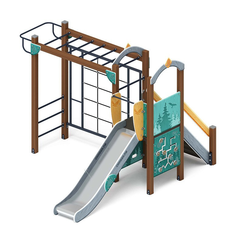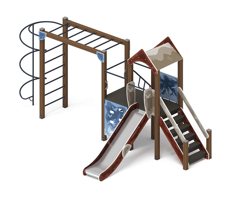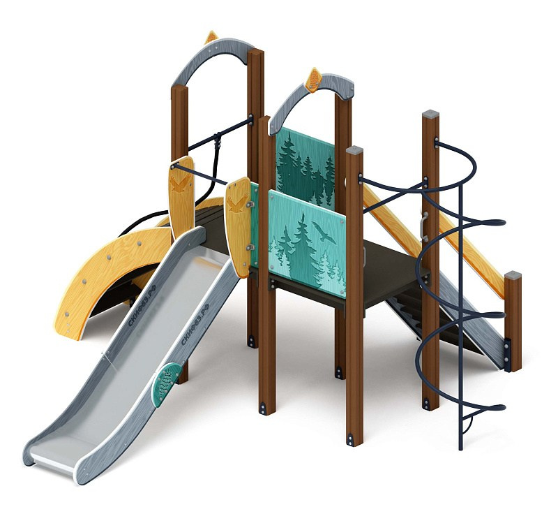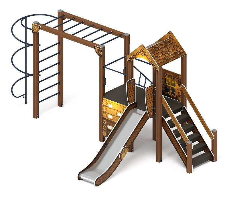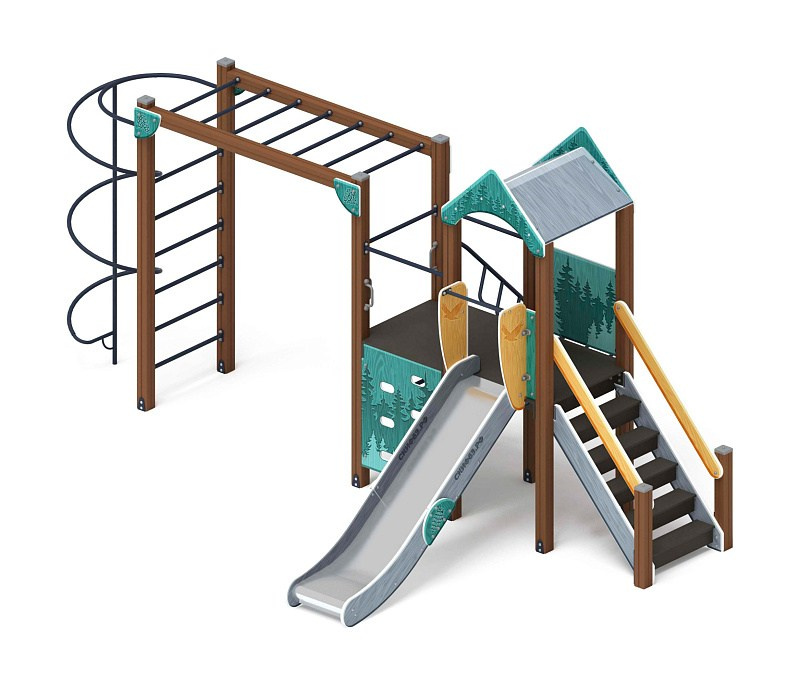 Играйте с нами (Тайга) - ДИК 2.01.1.01-03 - Игровой комплекс H=1200 Габариты (ШхДхВ): 4080x1000x3000 Зона безопасности, мм: 7580х4000 Скат горки: H=1200 (металлический скат) Возрастные ограничения от 5 до 12 лет