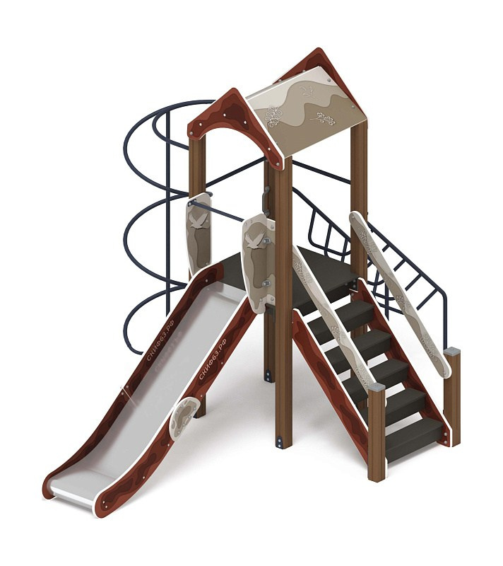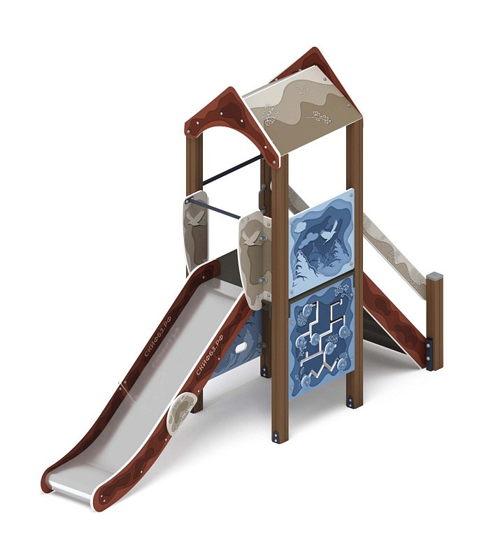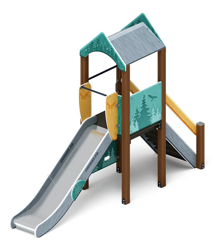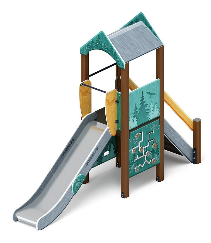 Играйте с нами (Тайга) - ДИК 2.01.1.01-13 - Игровой комплекс H=1200 Габариты (ШхДхВ): 4080x1000x3000 Зона безопасности, мм: 7580х4000 Скат горки: H=1200 (металлический скат) Возрастные ограничения от 5 до 12 лет