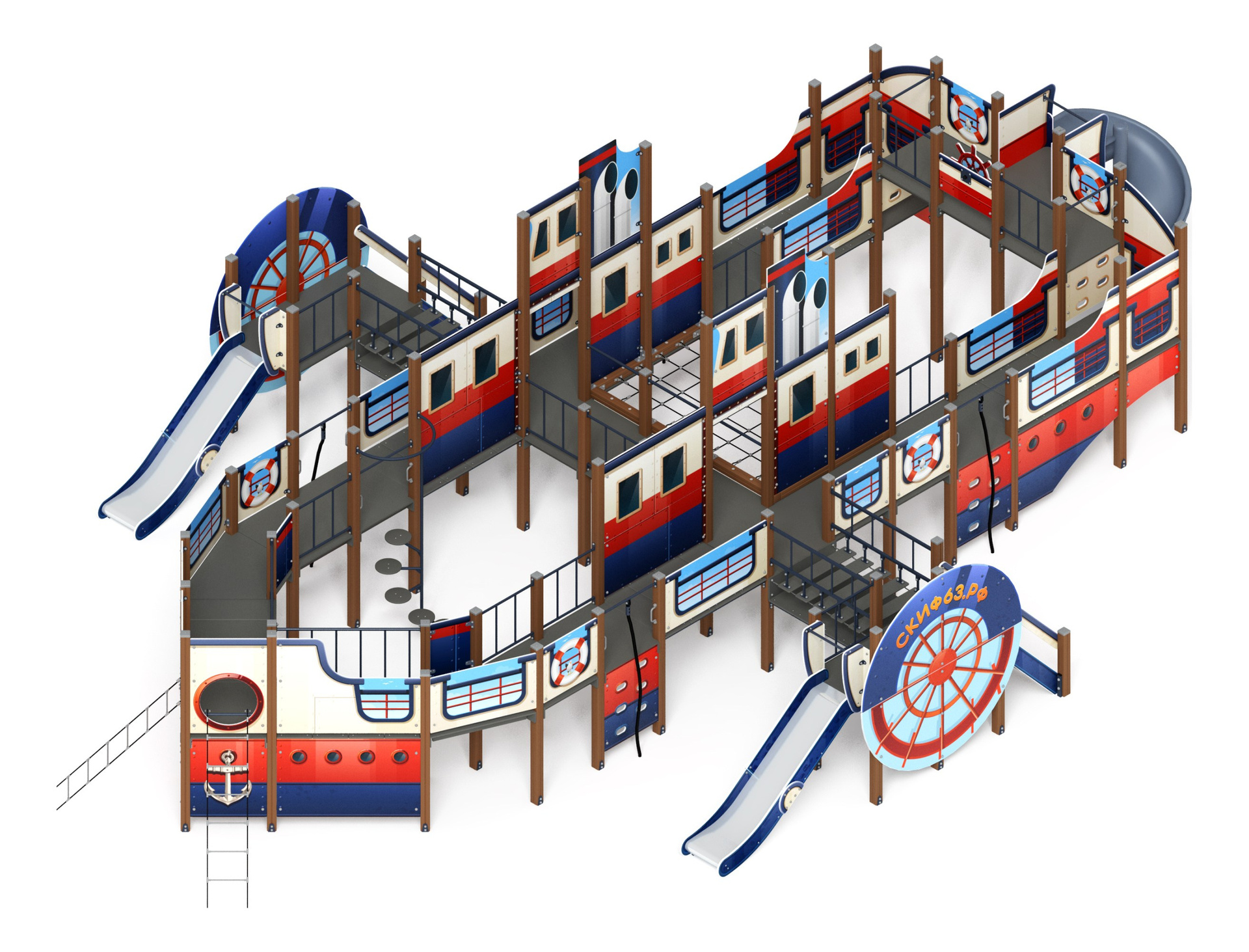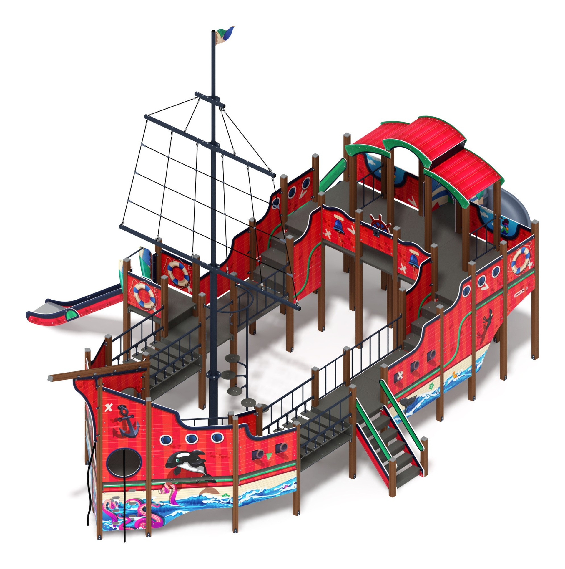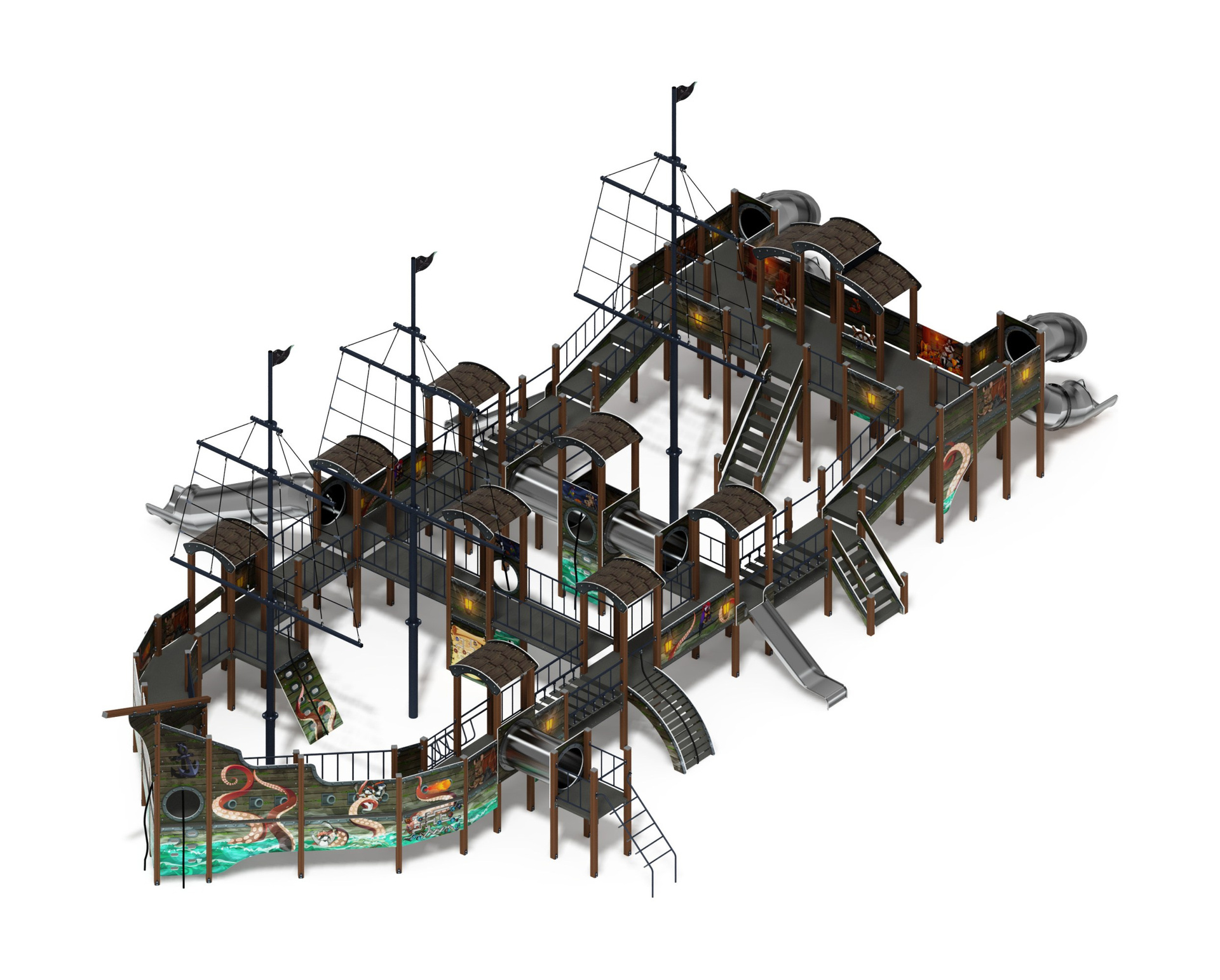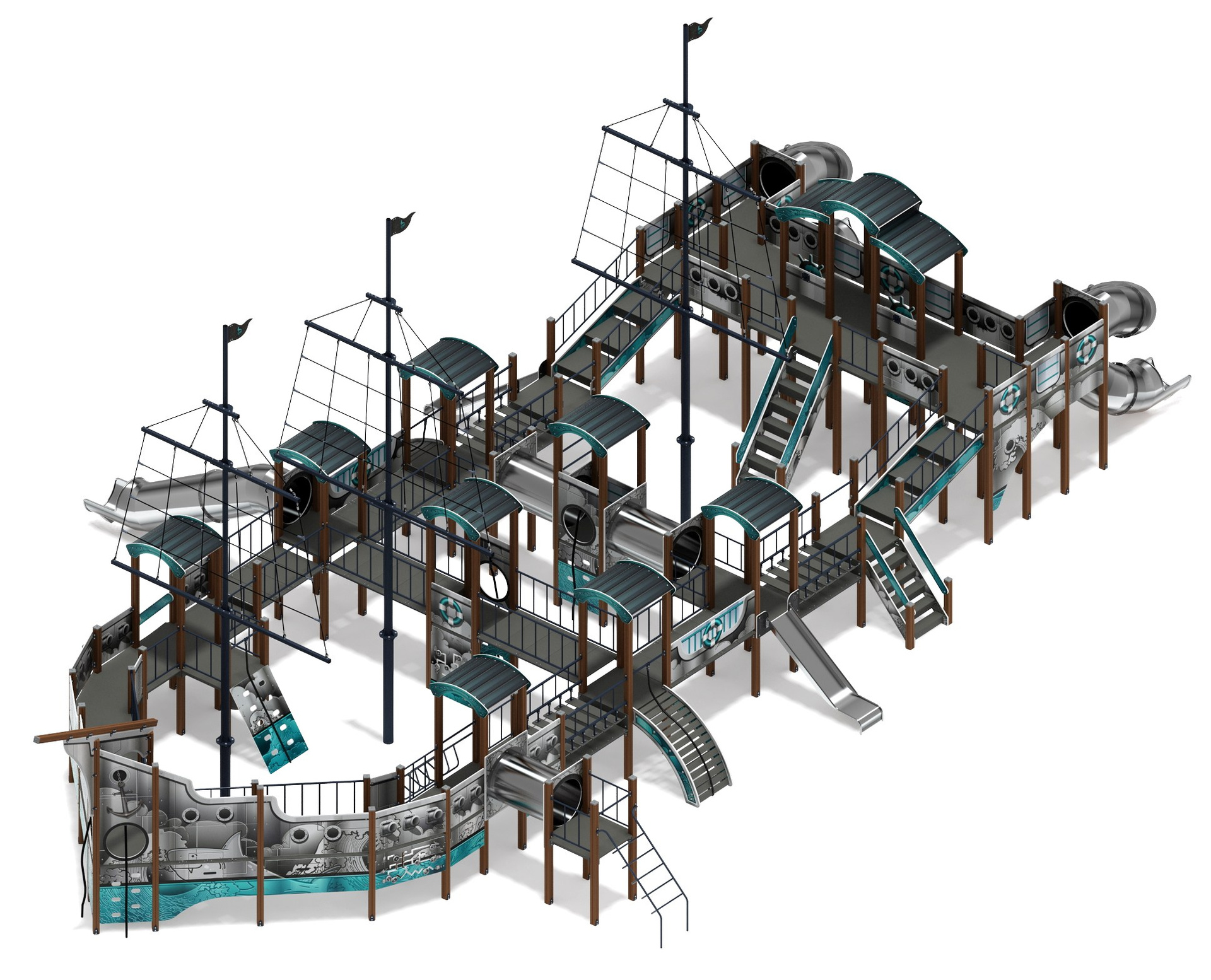 Баркентина (Летучий Голландец) - ДИК 2.03.3.06-11.И1 - Игровой комплекс (Винтовой скат) H=1200, Н=1500, Н=2000 Габариты (ШхДхВ): 22870х13850х9450 Зона безопасности, мм: 25870х17350 Скат горки: H=1200 (прямой скат) / H=1500 (винтовой скат) / H=2000 (винтовой скат) Возрастные ограничения от 5 до 12 лет