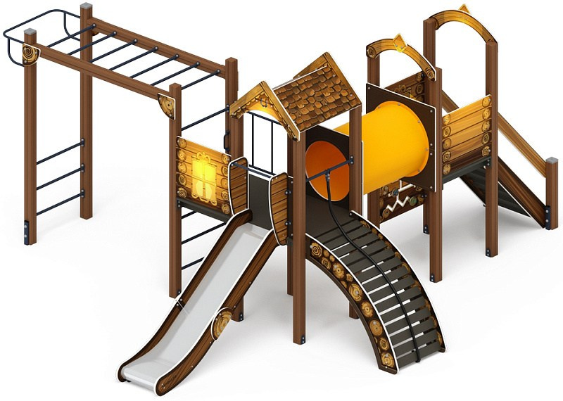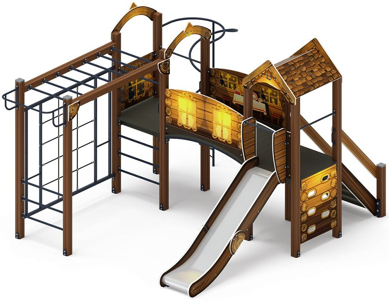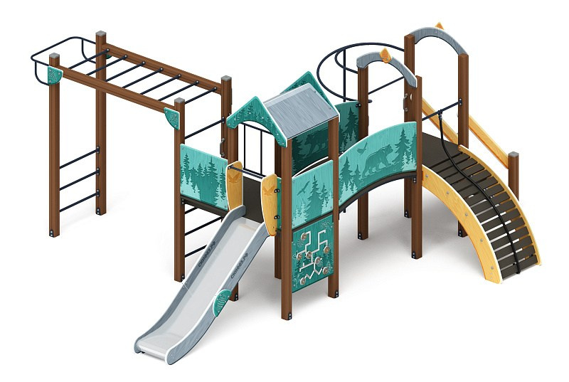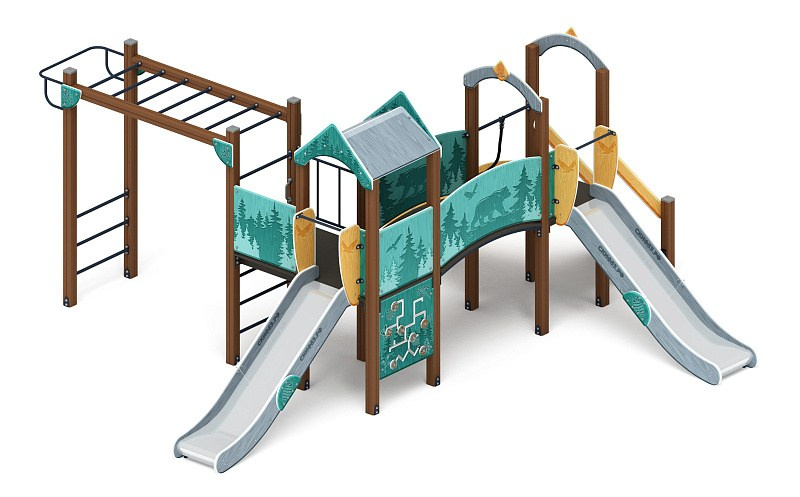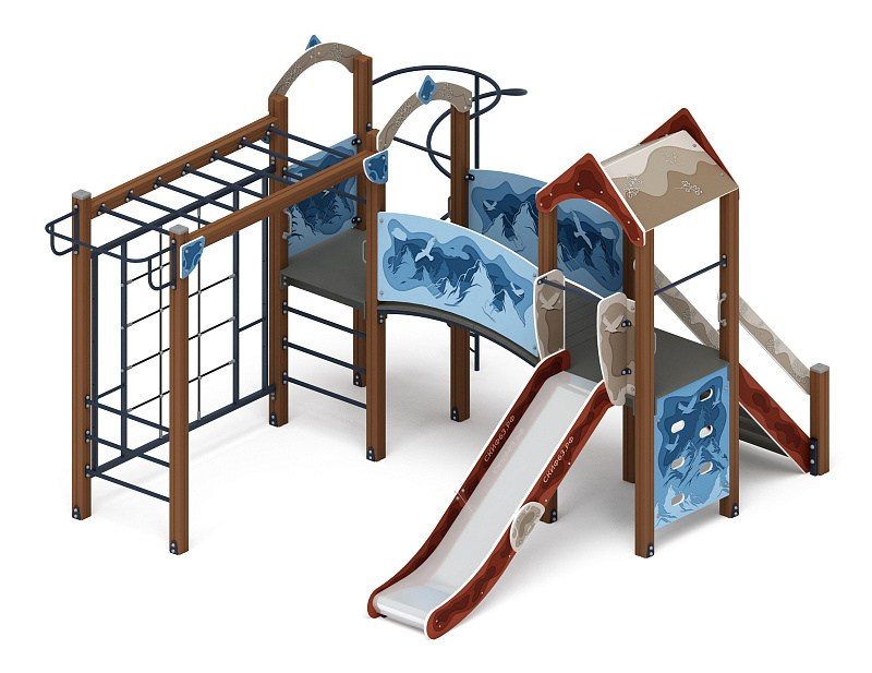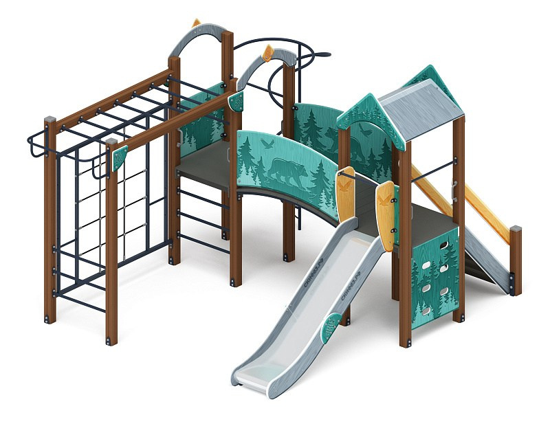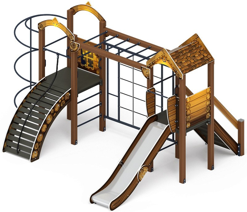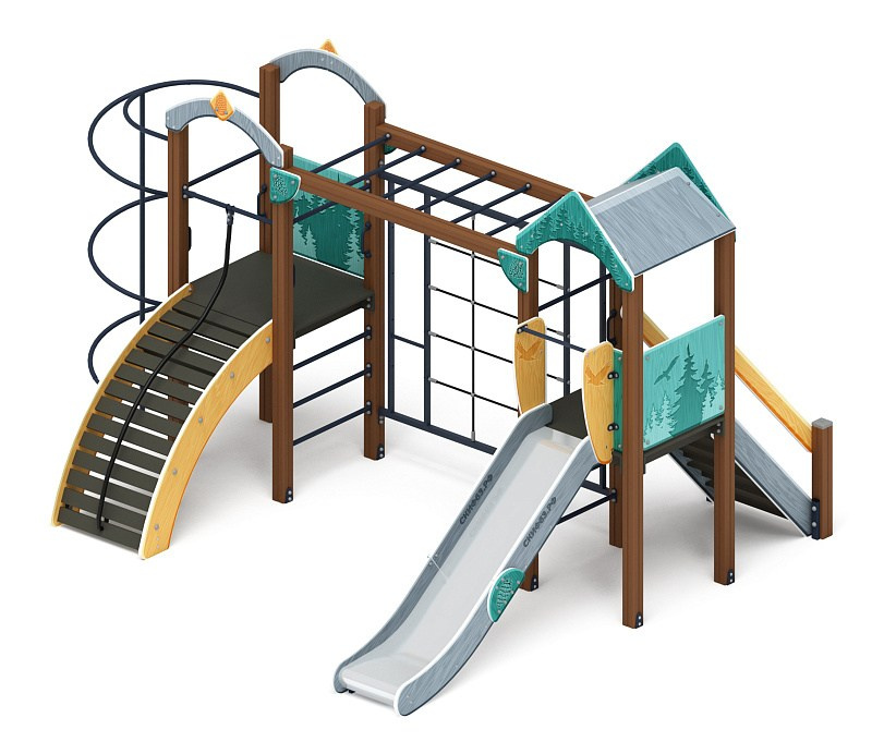 Рада (Тайга) - ДИК 2.01.2.08-23 - Игровой комплекс H=1200 Габариты (ШхДхВ): 6260x5730x3000 Зона безопасности, мм: 9760х8730 Скат горки: H=1200 (металлический скат)