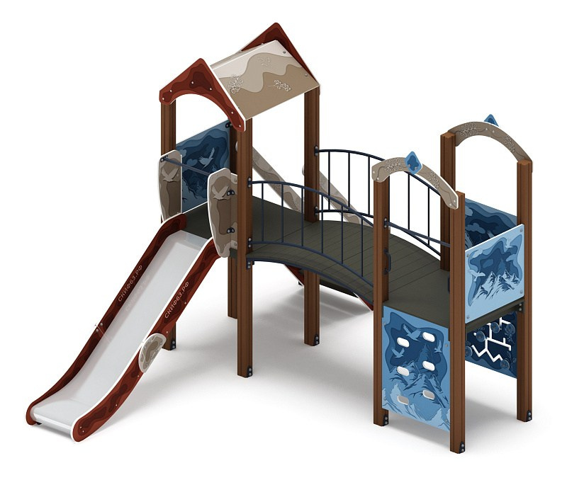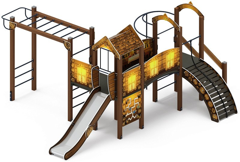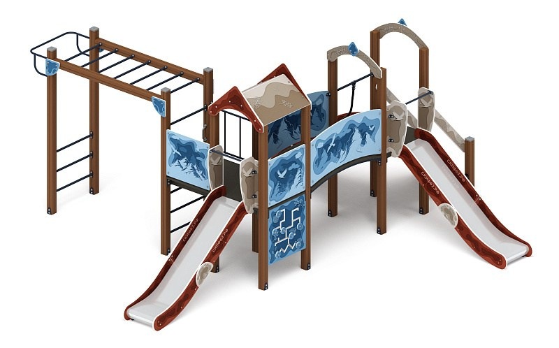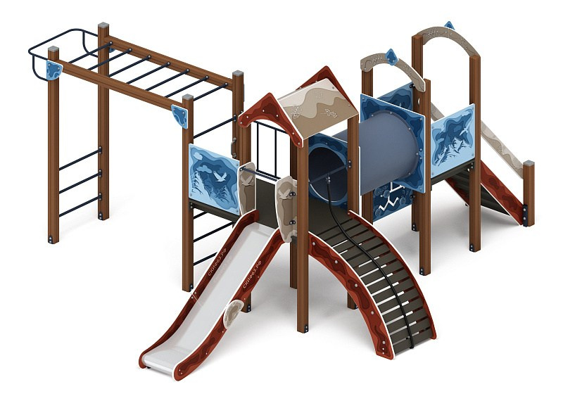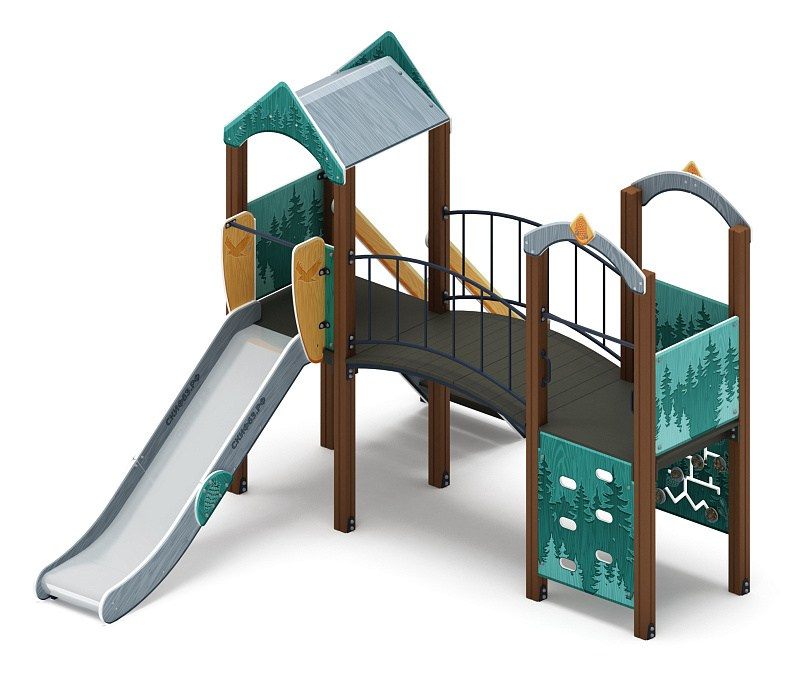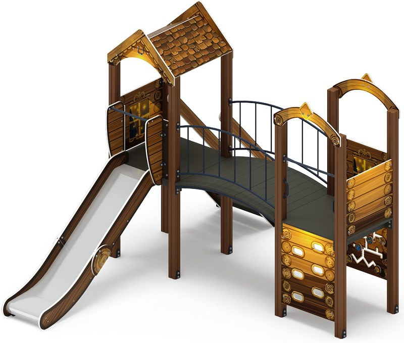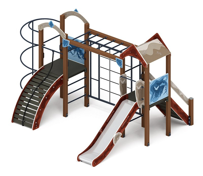 Рада (Тайга) - ДИК 2.01.2.08-23 - Игровой комплекс H=1200 Габариты (ШхДхВ): 6260x5730x3000 Зона безопасности, мм: 9760х8730 Скат горки: H=1200 (металлический скат)