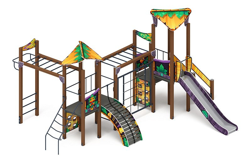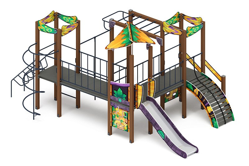 Волшебный город (Майя) - ДИК 2.19.02-01 - Игровой комплекс Н=1200 Габариты (ШхДхВ): 7250x5460x3570 Зона безопасности, мм: 8460х10750 Скат горки: H=1500 (металлический скат)