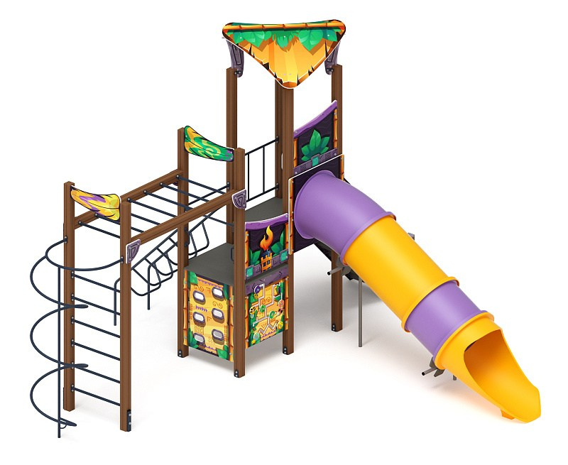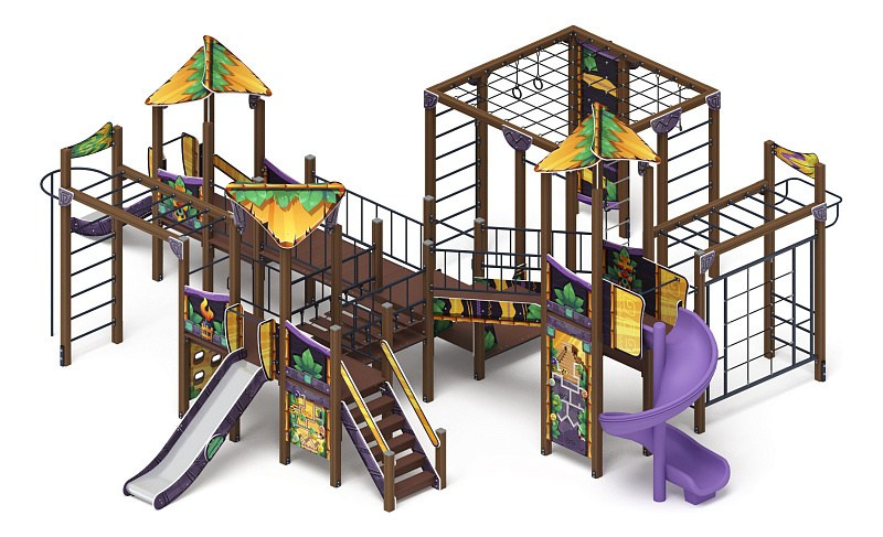 Волшебный город (Майя) - ДИК 2.19.01-01 - Игровой комплекс Н=1500 Габариты (ШхДхВ): 6900x7380x4070 Зона безопасности, мм: 10380х10400 Скат горки: H=1500 (металлический скат)