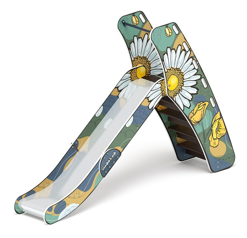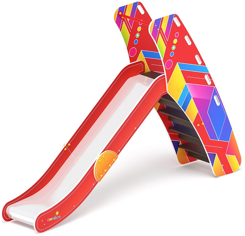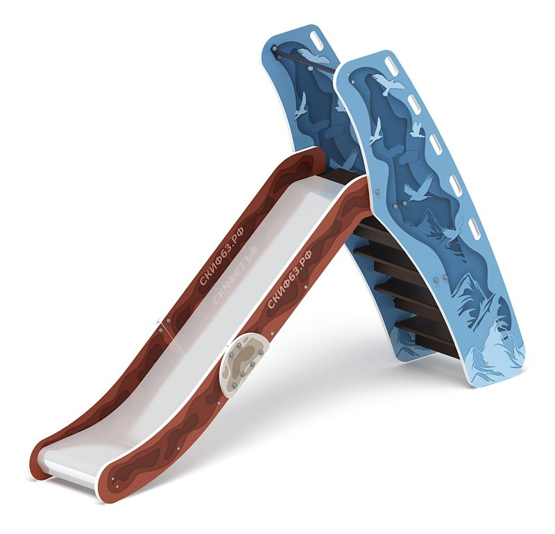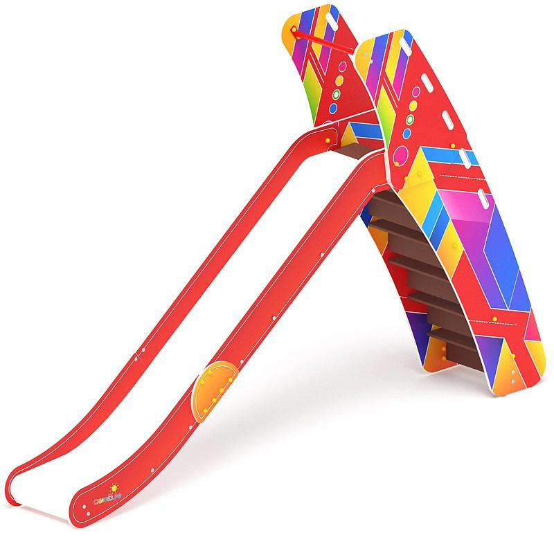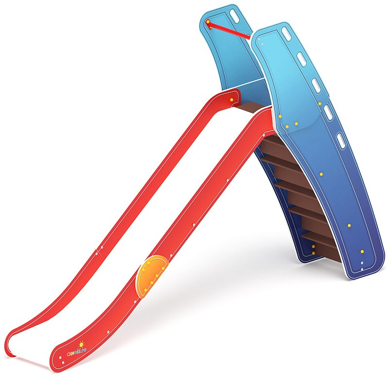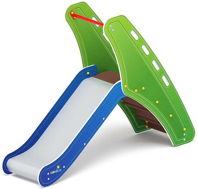 Горка мини - ИО 41.01.09-05 - (Калейдоскоп) H=750 Габариты (ШхДхВ): 570x2120x1550 Зона безопасности, мм: 3570х5620 Скат горки: H=750 (металлический скат) Возрастные ограничения от 3 до 12 лет, весом не более 70 кг