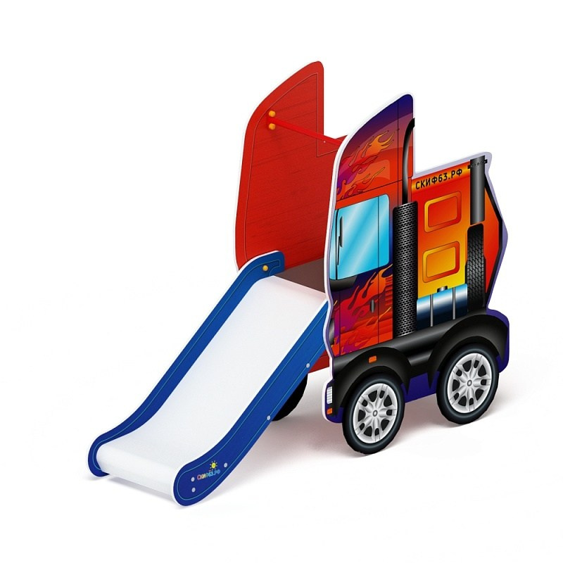 Горка Грузовичок - ИО 41.03.02-01 - H=750 Габариты (ШхДхВ): 2200x570x1660Зона безопасности, мм: 5700х3570 Скат горки: H=750 (металлический скат) Возрастные ограничения от 3 до 12 лет, весом не более 70 кг