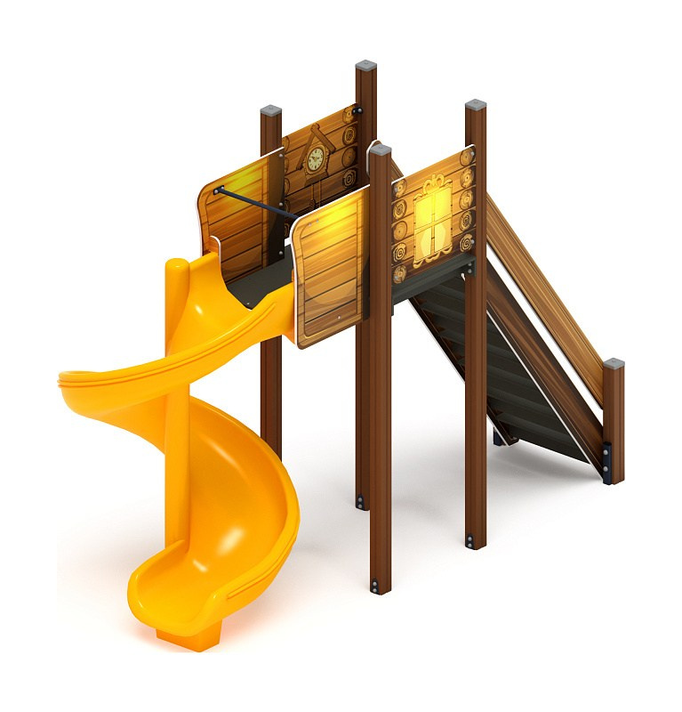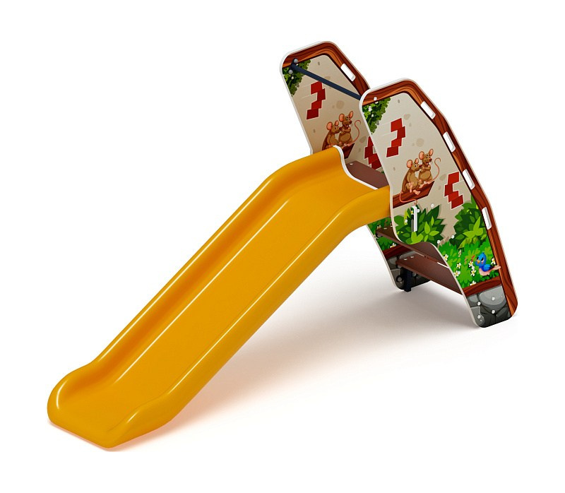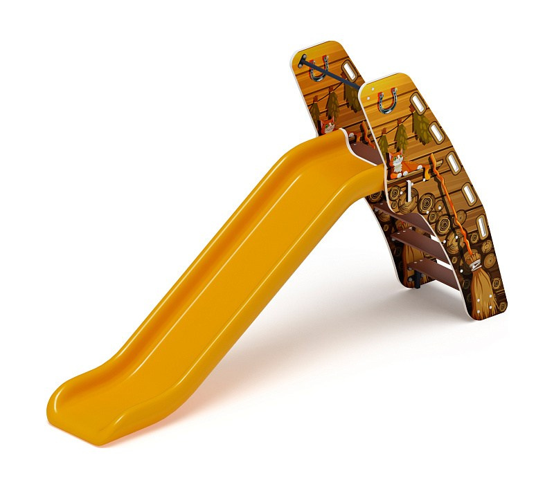 Горка пластиковая - ИО 42.01.05-02 - (желтый скат) (В гостях у сказки) H=900 Габариты (ШхДхВ): 2970x750x1710 Зона безопасности, мм: 6470х3750 Скат горки: H=900 (пластиковый скат) Возрастные ограничения от 3 до 12 лет, весом не более 70 кг