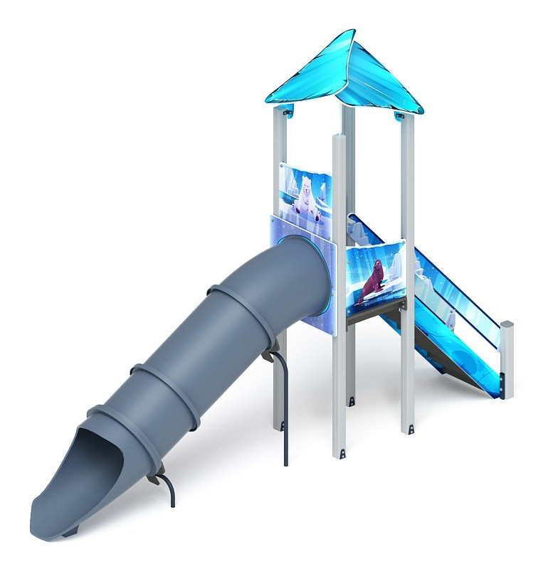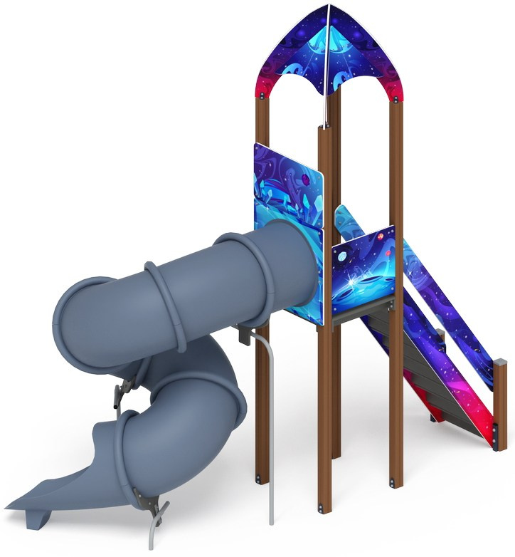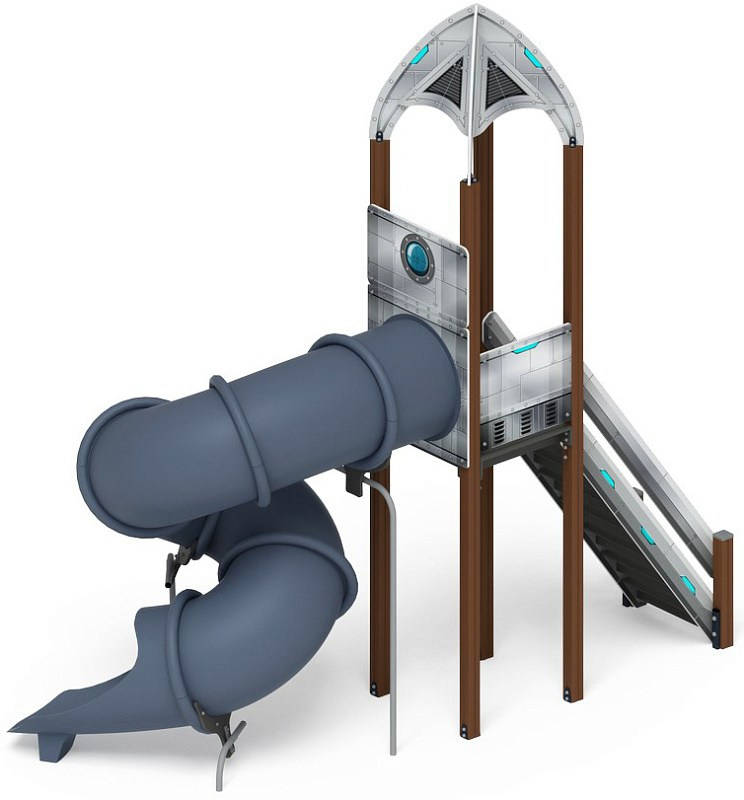 Горка тоннельная - ИО 45.14.01-01 - Космопорт (Серый) H=2000 Габариты (ШхДхВ): 4600x1900x5000 Зона безопасности, мм: 8100х5400 Скат горки: H=2000 (тоннельный винтовой скат) Возрастные ограничения от 5 до 12 лет, весом не более 70 кг