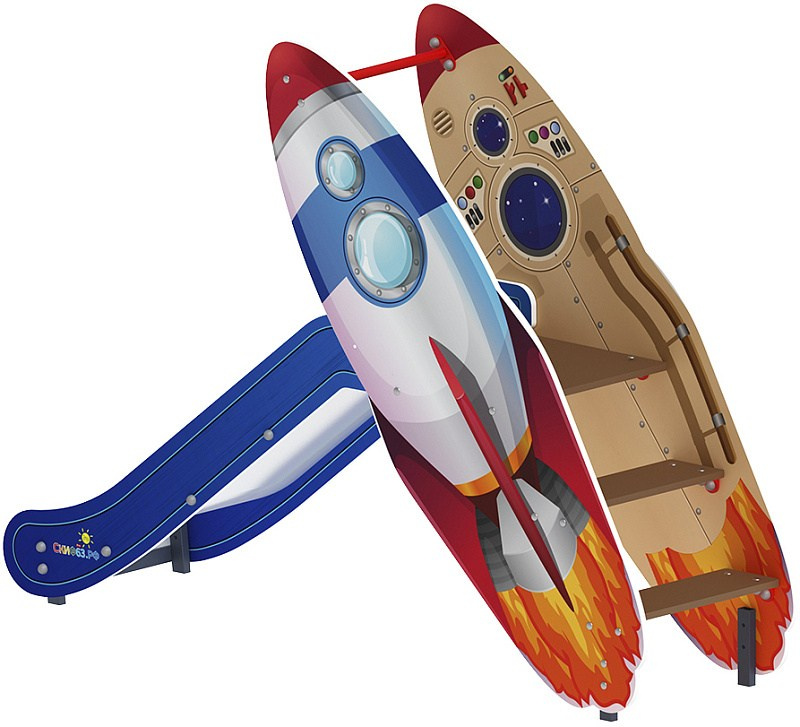 Горка Ракета - ИО 41.14.01-02 - H=750 Габариты (ШхДхВ): 2130x570x1600 Зона безопасности, мм: 5630х3570 Скат горки: H=750 (металлический скат) Возрастные ограничения от 3 до 12 лет, весом не более 70 кг