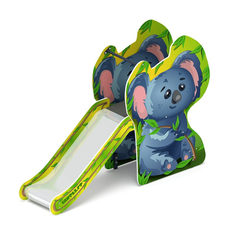 Горка Коала - ИО 41.01.10-01 Н=750 Габариты (ШхДхВ): 2260х560х1600 Зона безопасности, мм: 5760х3560 Скат горки: H=750 (металлический скат) Возрастные ограничения от 3 до 12 лет, весом не более 70 кг