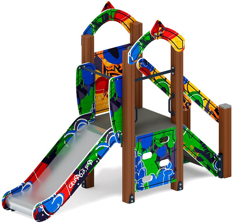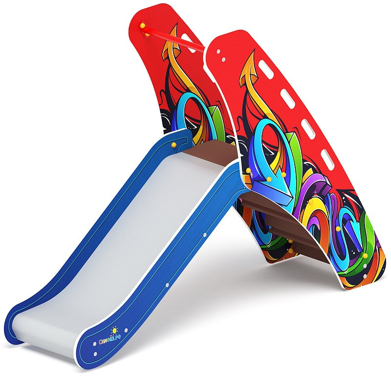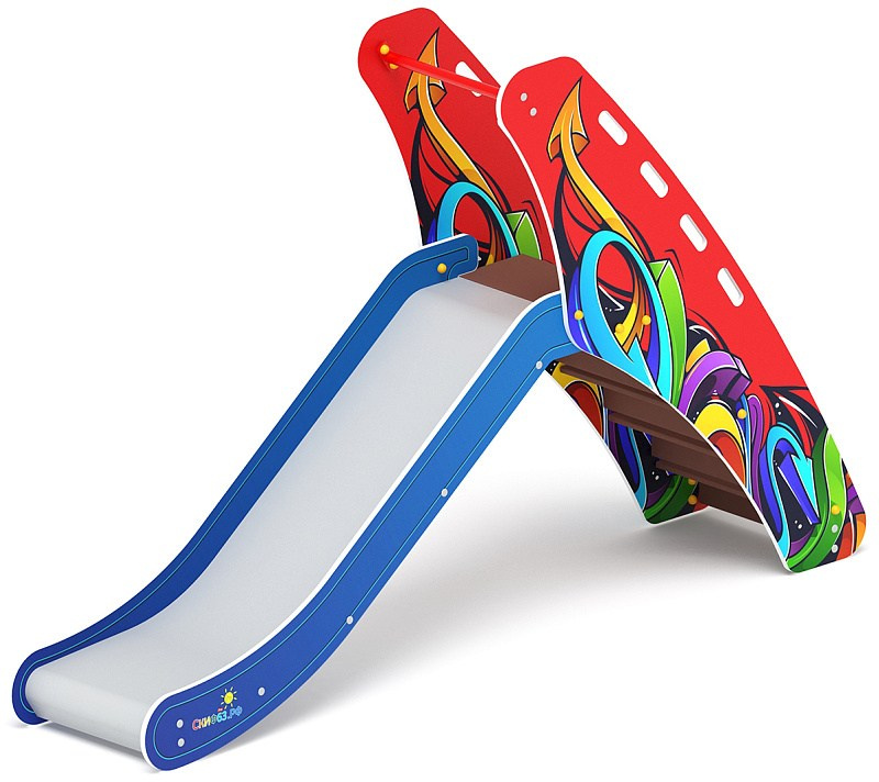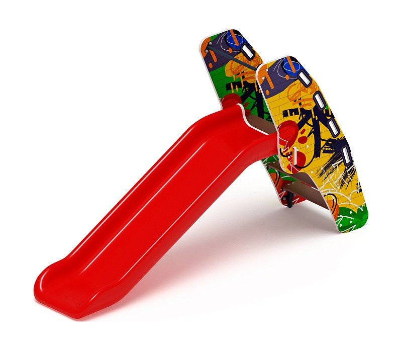 Горка мини - ИО 41.01.09-01 - (Граффити) H=750 Габариты (ШхДхВ): 570x2120x1550 Зона безопасности, мм: 3570х5620 Скат горки: H=750 (металлический скат) Возрастные ограничения от 3 до 12 лет, весом не более 70 кг