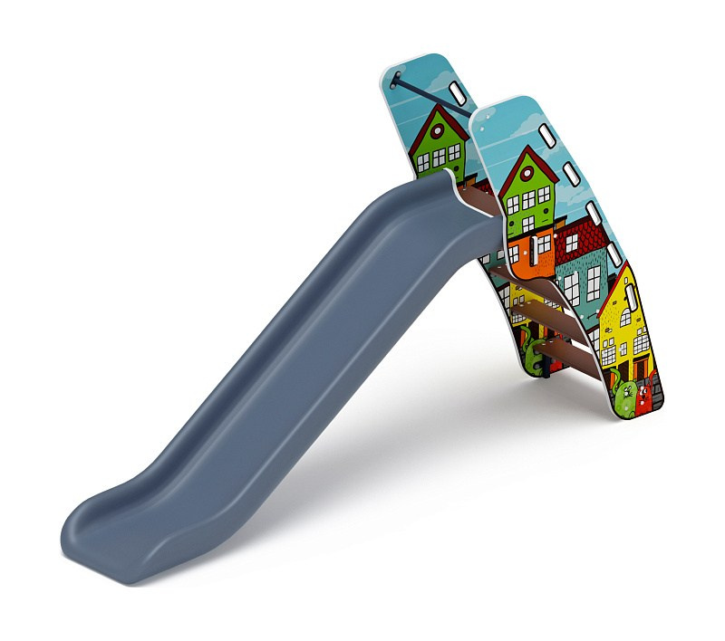 Горка мини - ИО 41.01.09-03 - (Джинс) H=750 Габариты (ШхДхВ): 570x2120x1550 Зона безопасности, мм: 3570х5620 Скат горки: H=750 (металлический скат) Возрастные ограничения от 3 до 12 лет, весом не более 70 кг