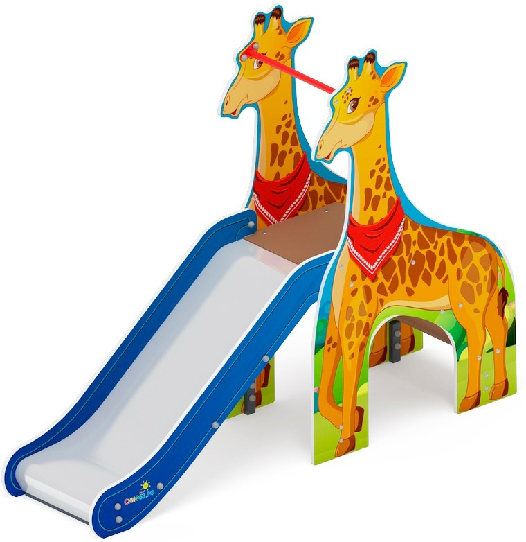 Горка Жираф - ИО 41.01.03-01 - (Сафари) H=750 Габариты (ШхДхВ): 2160x570x1670 Зона безопасности, мм: 5660х3570 Скат горки: H=750 (металлический скат) Возрастные ограничения от 3 до 12 лет, весом не более 70 кг
