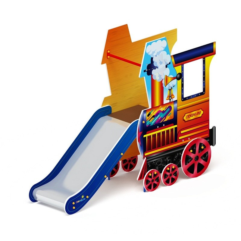 Горка Паровозик - ИО 41.03.01-01 - H=750 Габариты (ШхДхВ): 2190x570x1680 Зона безопасности, мм: 5690х3570 Скат горки: H=750 (металлический скат) Возрастные ограничения от 3 до 12 лет, весом не более 70 кг