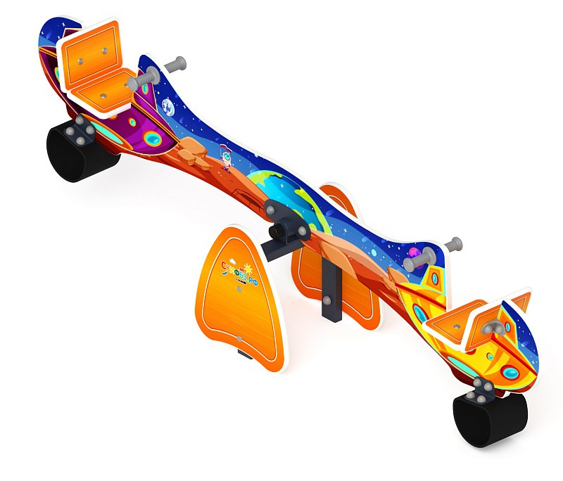 Качалка-балансир (Космопорт) ИО 21.М.01.03-01.И1 Габариты (ШхДхВ): 2500х400х750 Зона безопасности, мм: 4500х2400 Возрастные ограничения от 4 до 8 лет