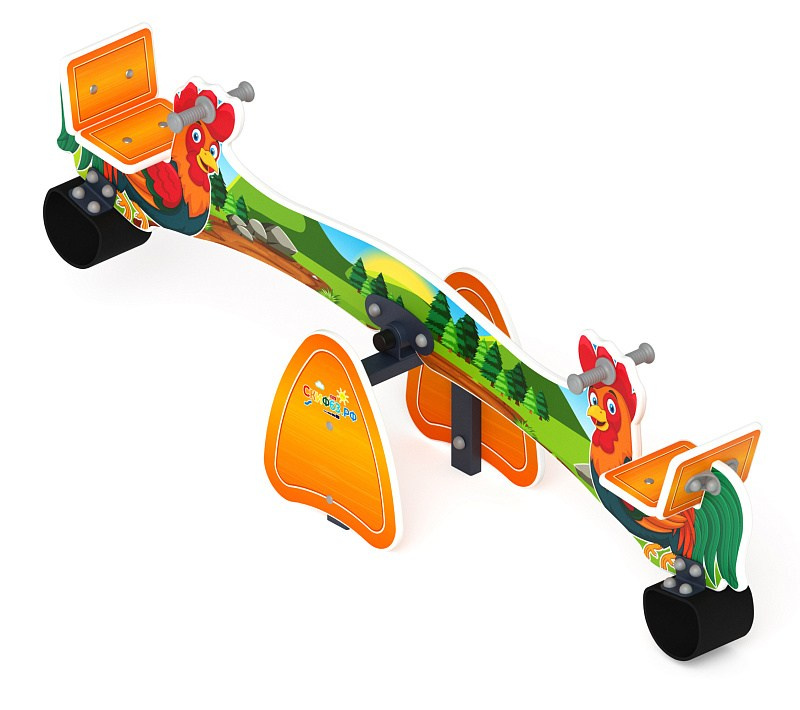 Качалка балансир со спинкой Петушки - ИО 21.Д.01.01-И1 - Космопорт Габариты (ШхДхВ): 2040x400x630 Зона безопасности, мм: 4040х2400 Возрастные ограничения от 4 до 8 лет
