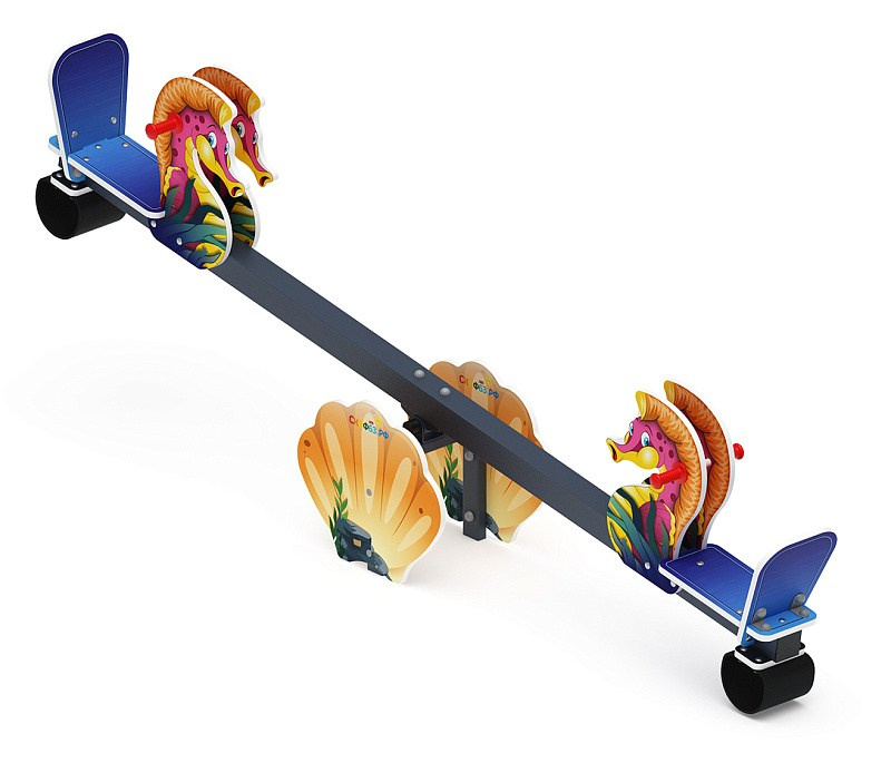 Качалка балансир со спинкой Морской конек - ИО 21.М.17.01-И1 Габариты (ШхДхВ): 2800x400x900 Зона безопасности, мм: 4800х2400 Возрастные ограничения от 4 до 8 лет