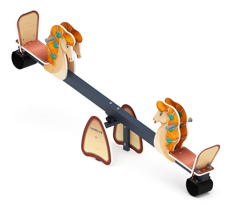 Качалка балансир со спинкой Лошадка - ИО 21.М.01.02-И1 Габариты (ШхДхВ): 2500x400x900 Зона безопасности, мм: 4500х2400 Возрастные ограничения от 4 до 8 лет