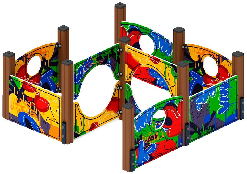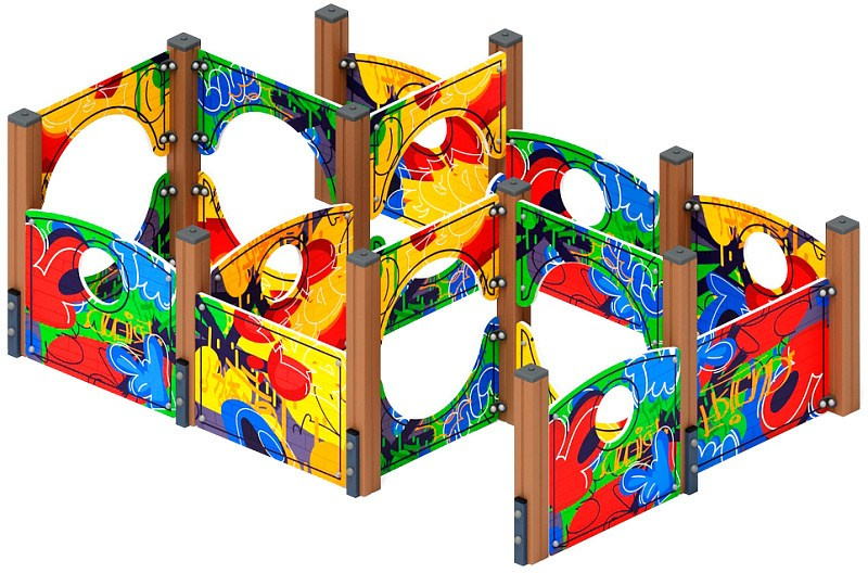 Лабиринт Кубик 2 (граффити) МФ 20.01.02-10 Габариты (ШхДхВ): 2850х1970х1520 Зона безопасности, мм: 4850х3970
