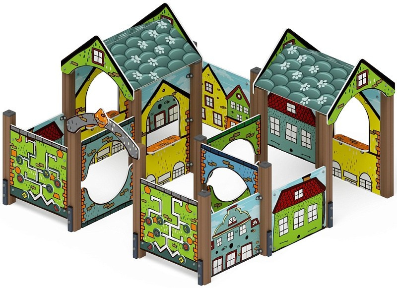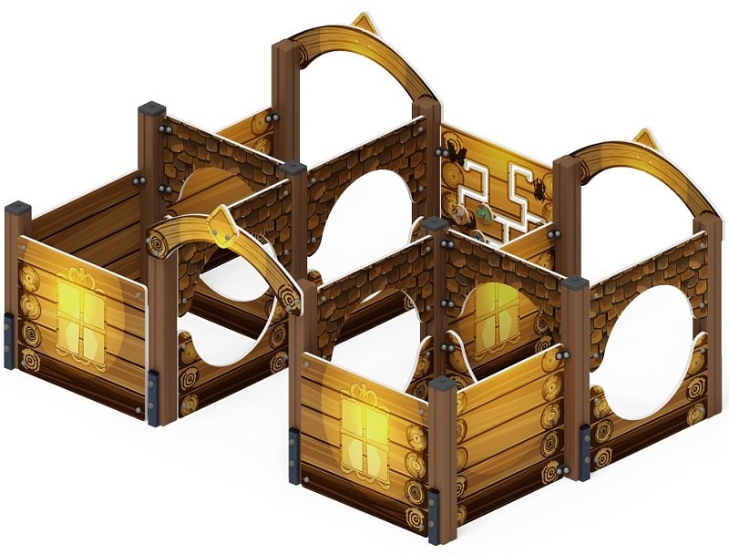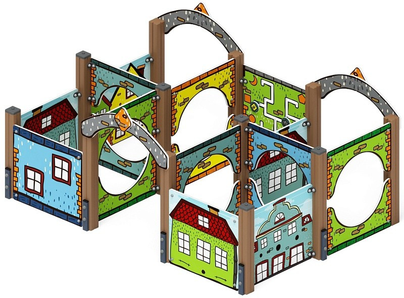Лабиринт Кубик 4 (город) МФ 20.01.04-01 Габариты (ШхДхВ): 3590х2860х1730 Зона безопасности, мм: 5590х4860