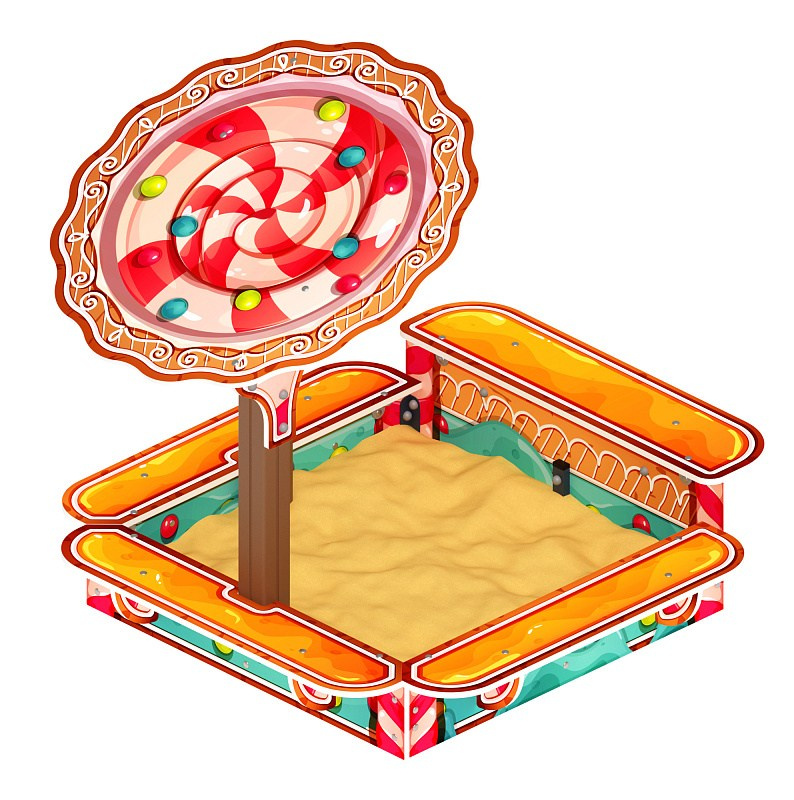 Песочница с навесом Ромашка (Пряничный домик) - ИО 5.01.06-03 Габариты (ШхДхВ): 1615x1615x1410 Зона безопасности, мм: 2615х2615
