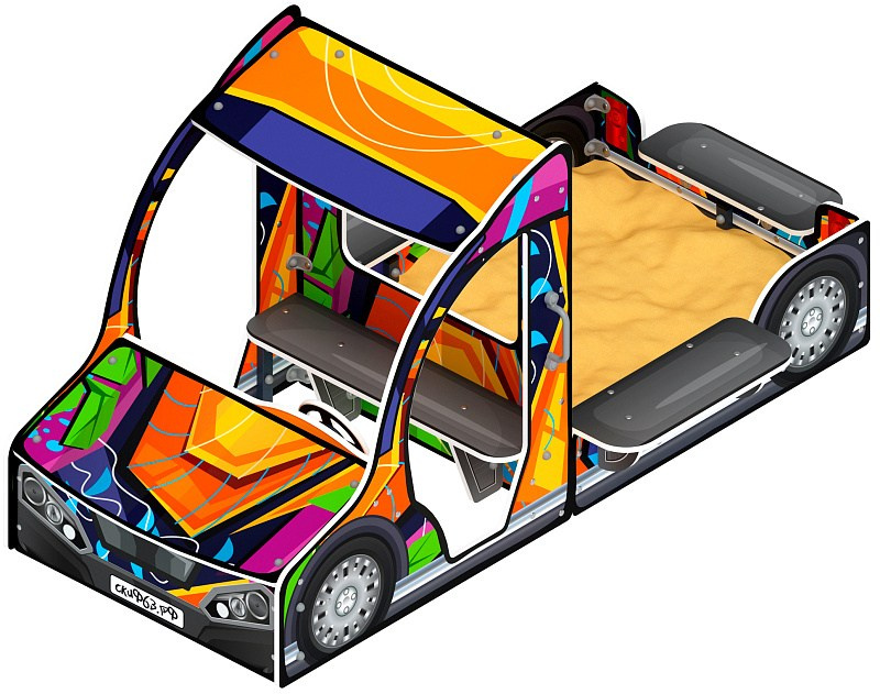 Песочница Грузовичек (маскарад) ИО 5.03.03-11 Габариты (ШхДхВ): 2580х1450х1250 Зона безопасности, мм: 3450х4580