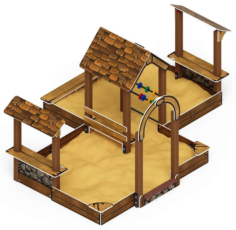 Песочный дворик Теремок (Коричневый) - ИО 6.01.04-02 Габариты (ШхДхВ): 2880x2995x2000 Зона безопасности, мм: 4880х4995