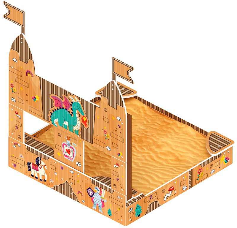 Песочница Королевство (Картонное) ИО 5.15.01-12 Габариты (ШхДхВ): 1920x1790x1630 Зона безопасности, мм: 2920х2790
