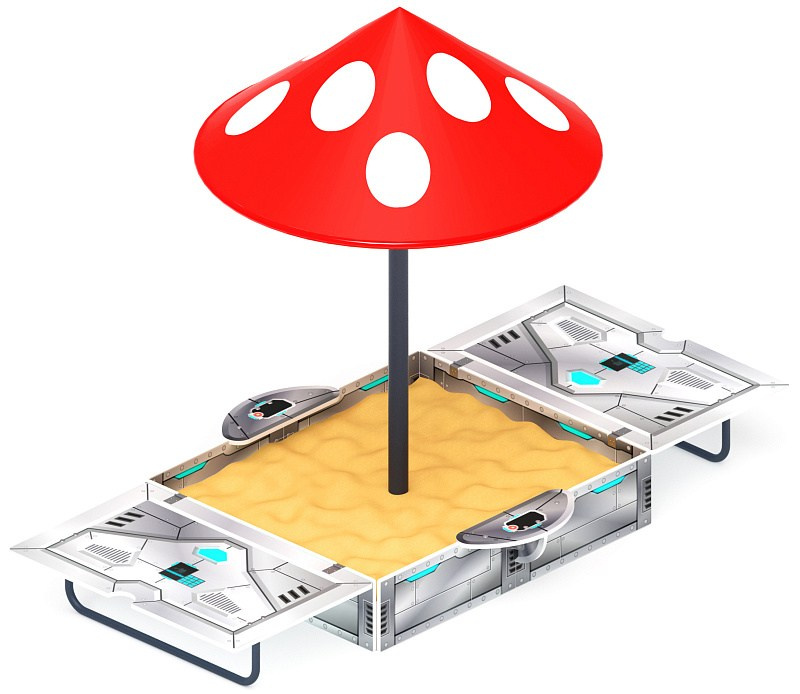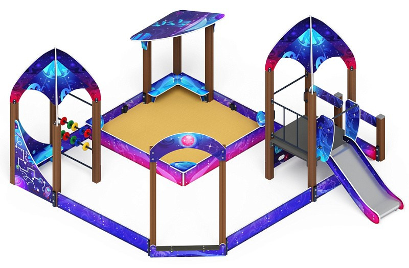 Песочный дворик с горкой Космопорт (Космос) - ИО 6.14.01-02 H=750 Габариты (ШхДхВ): 4510x5180x3000 Зона безопасности, мм: 6510х7680