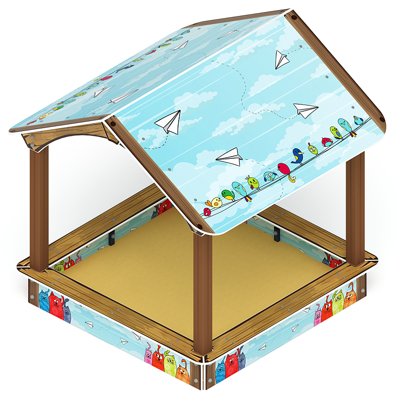 Песочный дворик с навесом Домик (Полянка) - ИО 6.01.02-03 Габариты (ШхДхВ): 2000x2050x2000 Зона безопасности, мм: 3000х3050