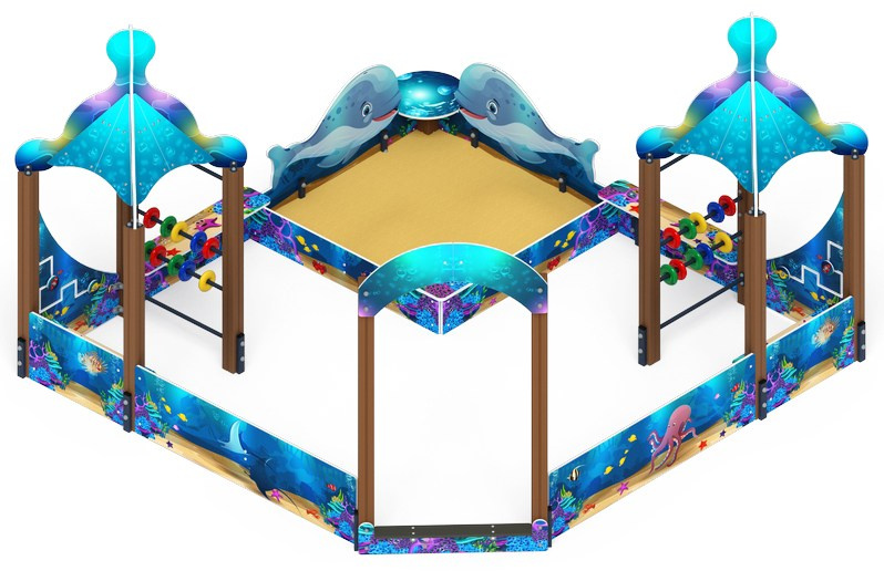Песочница с крышкой средняя (Рыбы) - ИО 5.01.11-08 Габариты (ШхДхВ): в закрытом виде 1500х1500х650 в открытом виде 2990х1500х300Зона безопасности, мм: 3990х2500