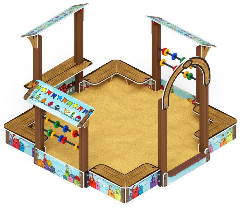 Песочница восьмигранная Карнавал (Шанхай) - ИО 5.01.04-21 Габариты (ШхДхВ): 2320x2320x500 Зона безопасности, мм: 4320х4320