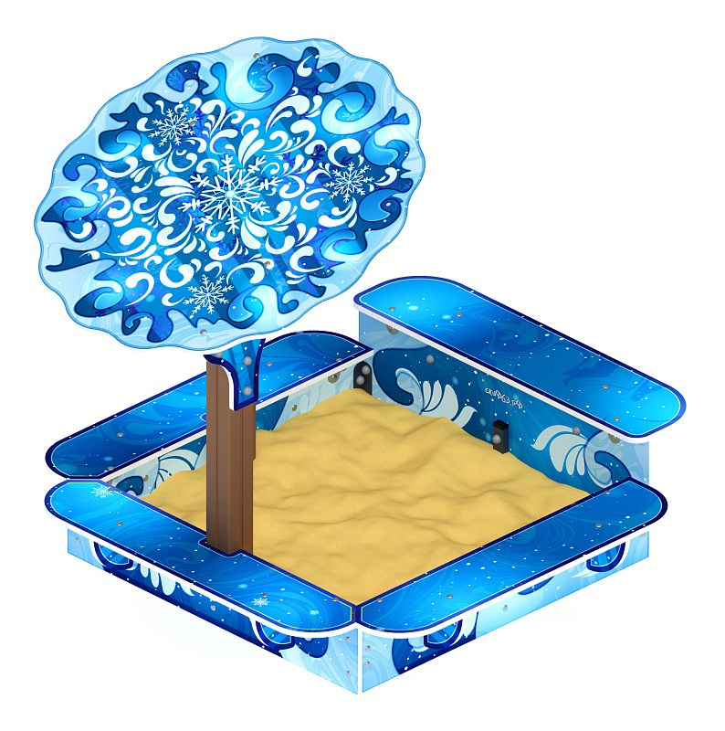 Песочница с навесом Ромашка (Снежная королева) - ИО 5.01.06-02 Габариты (ШхДхВ): 1615x1615x1410 Зона безопасности, мм: 2615х2615