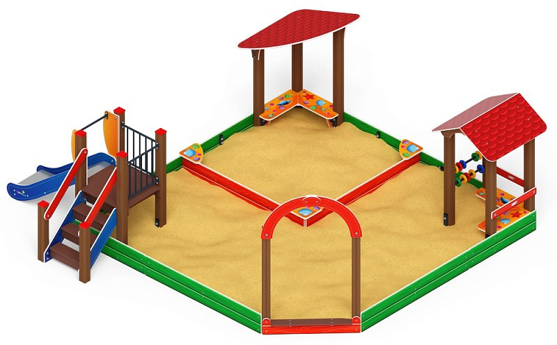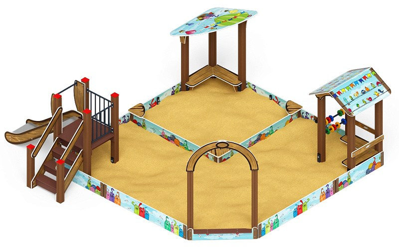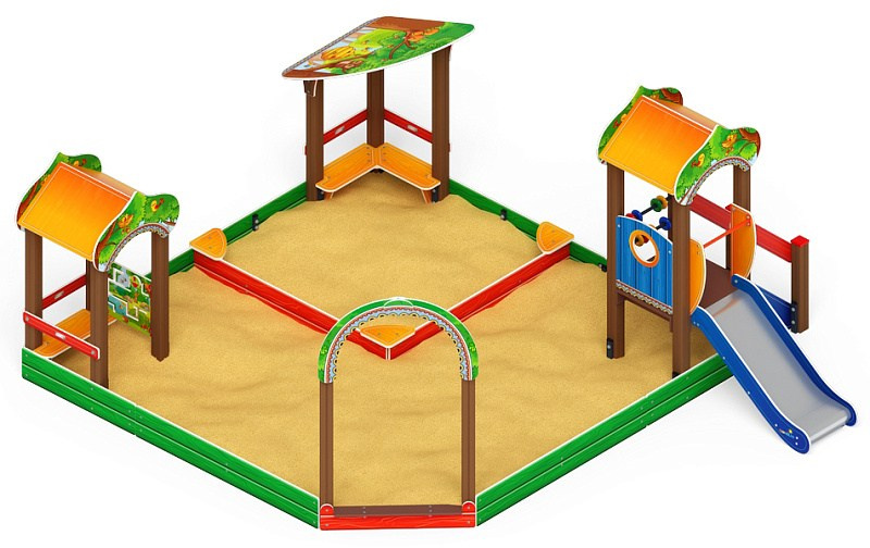 Песочный дворик с горкой (Техно) - ИО 6.01.05-04 H=750 Габариты (ШхДхВ): 5260x4800x2080 Зона безопасности, мм: 7760х6800