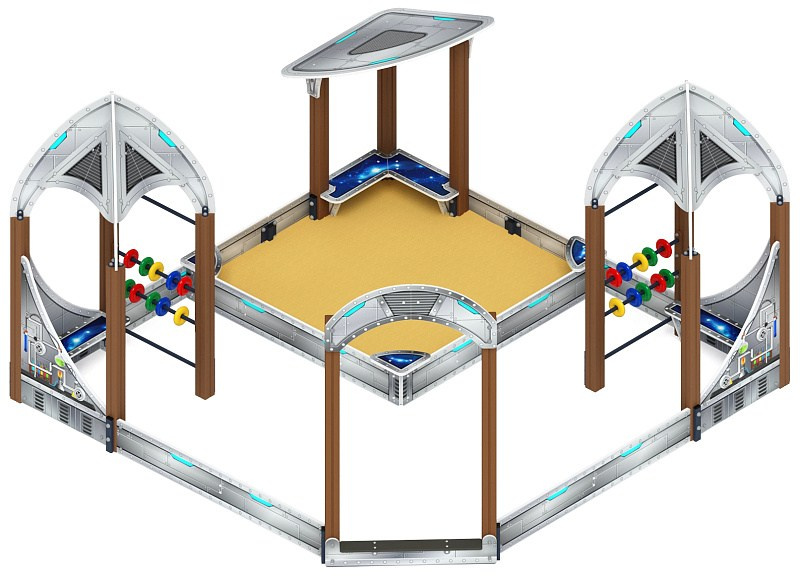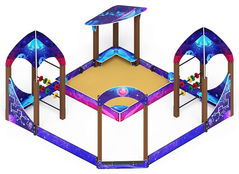 Песочный дворик Космопорт (Космос) - ИО 6.14.02-02 Габариты (ШхДхВ): 4000x4000x2500 Зона безопасности, мм: 5000х5000