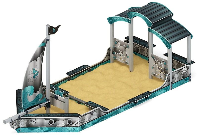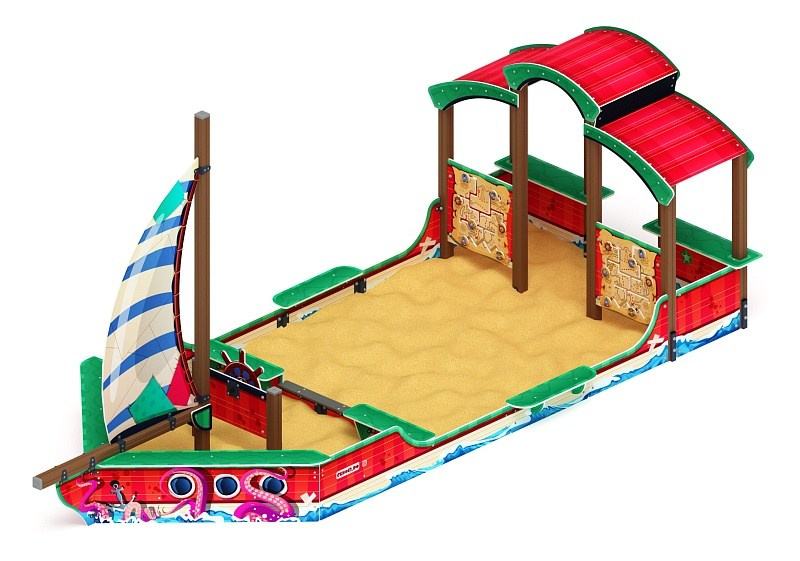 Песочный дворик Морская Яхта (Летучий Голландец) - ИО 6.03.01-04 Габариты (ШхДхВ): 7540х3160х3500 Зона безопасности, мм: 10540х6160